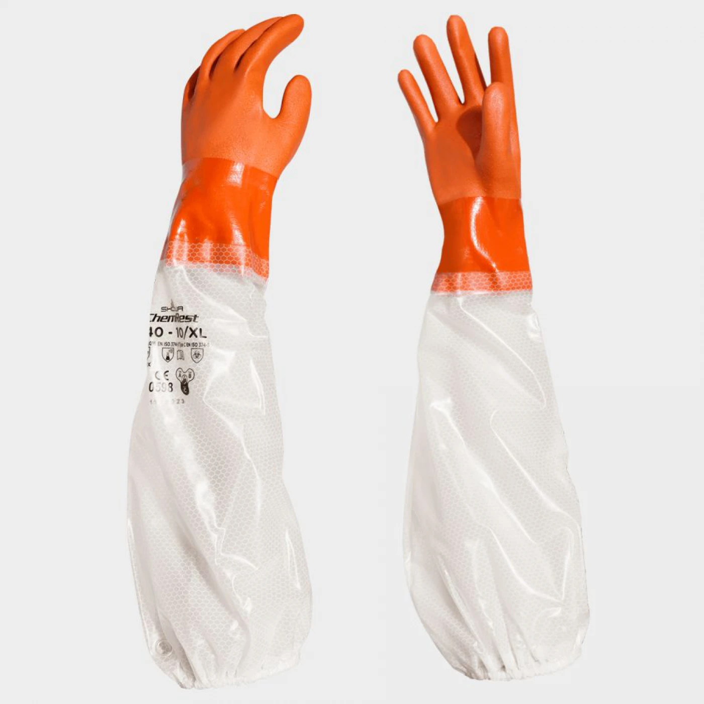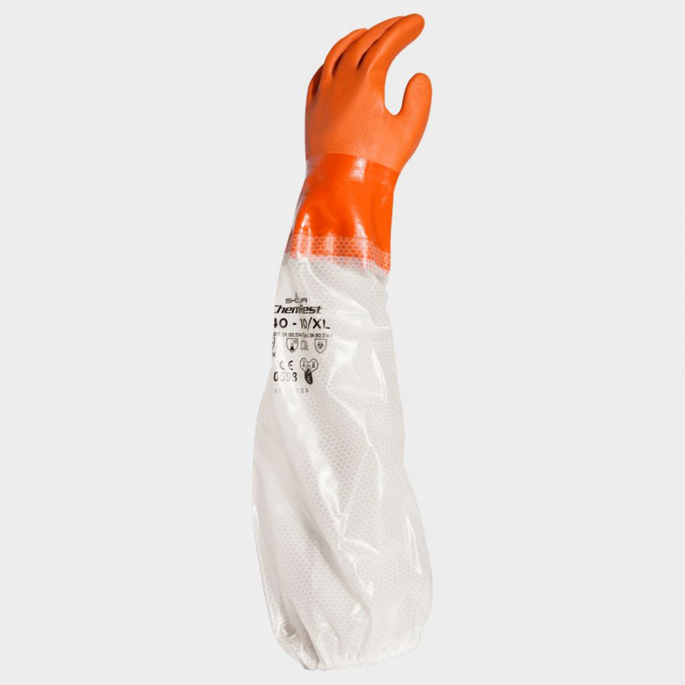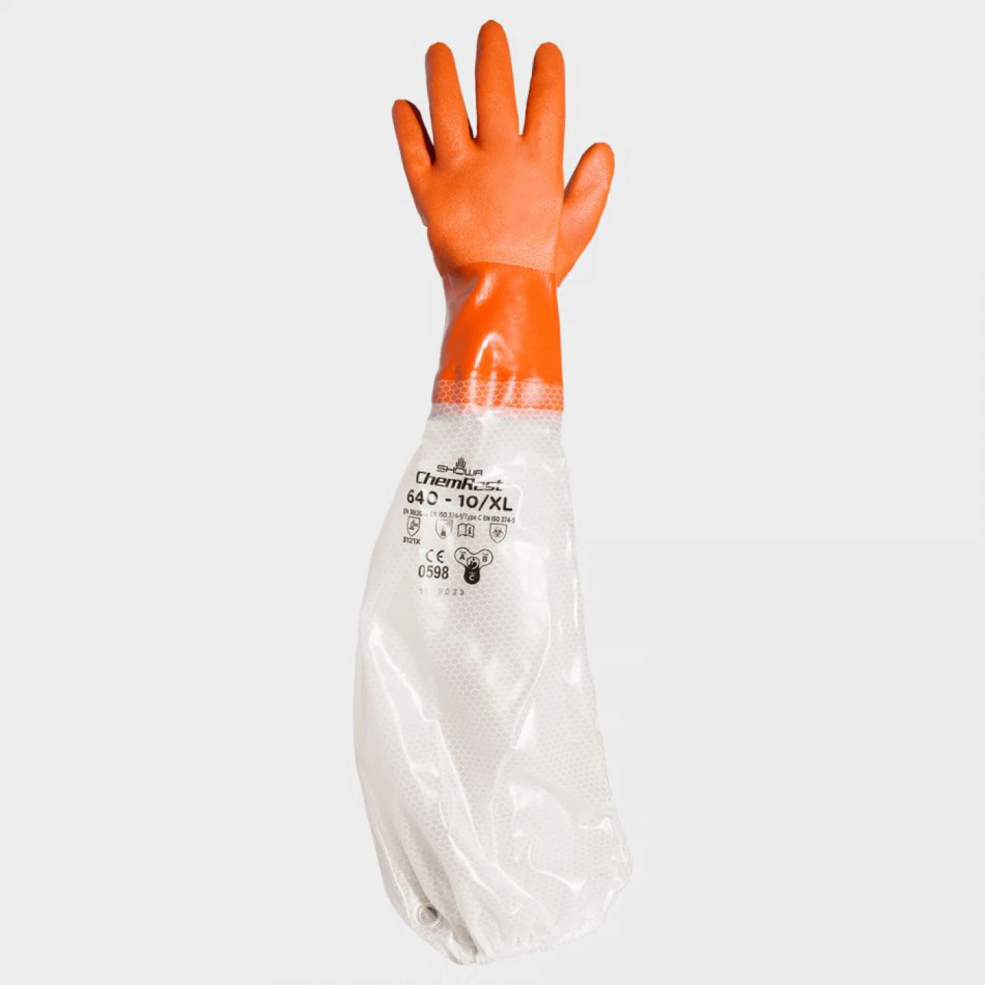 Mănuși rezistente la substanțe chimice, care oferă protecție completă pentru mâini și mâneci, protejându-le de acizi, baze, solvenți și lichide. Concepute cu căptușeală moale din bumbac și material flexibil, sunt extrem de confortabile. Mănușile SHOWA 640 au un strat de PVC dublu fuzionat pentru o aderență mai bună, o rezistență sporită la abraziune și o rezistență îmbunătățită, în timp ce mâneca impermeabilă de vinil, finisată cu elastic, îmbunătățește și mai mult protecția extremităților superioare. Ideal pentru industria chimica si farmaceutica, laboratoare, agricultura.
