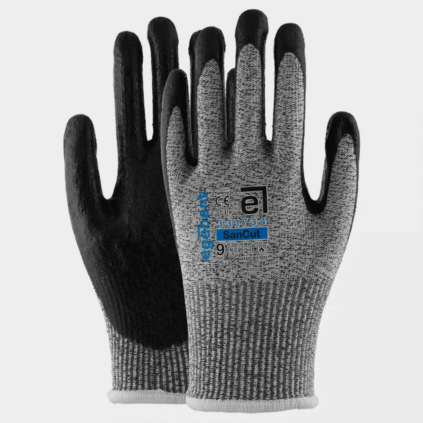 Mănuși rezistente la tăiere (nivel D) fabricate din HPPE, fibre de oțel și poliester, topite în spumă de nitril pentru protecție și confort optim în timpul lucrului.