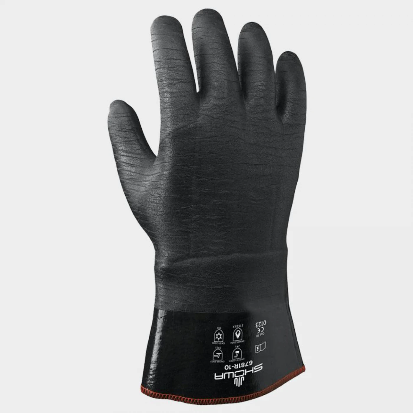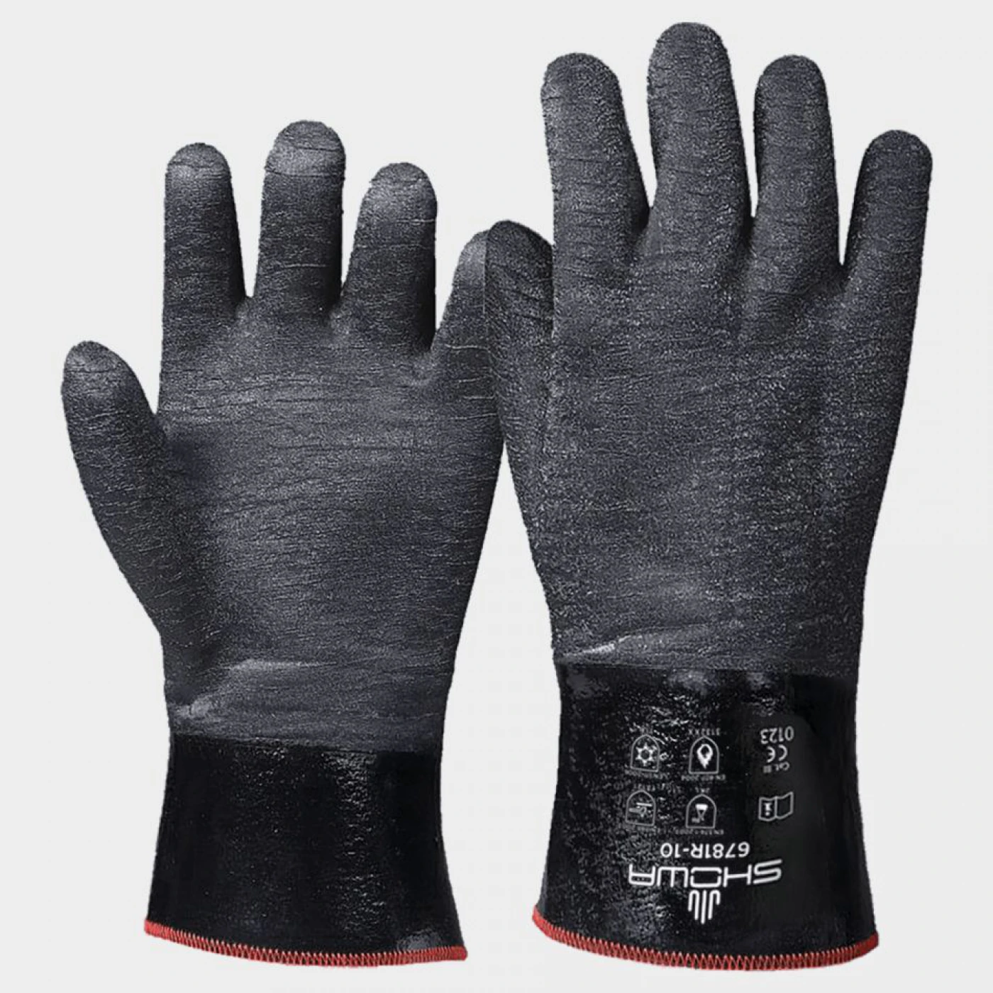 Mănuși cu bază de bumbac și acoperire din neopren negru, potrivite pentru lucrul în condiții dure. Acestea protejează împotriva acizilor, diferitelor substanțe corozive, uleiurilor, grăsimilor și diverșilor solvenți. Caracteristici: Baza din bumbac ajută la menținerea răcorului în condiții calde de lucru și căldură (până la 250°C), în condiții de frig, rezistenta la ulei și acizi, nivel ridicat de protecție împotriva uzurii, abraziunii și ruperii, potrivita pentru lucrări industriale grele inclusiv și sablare. Lungime de 320 mm.