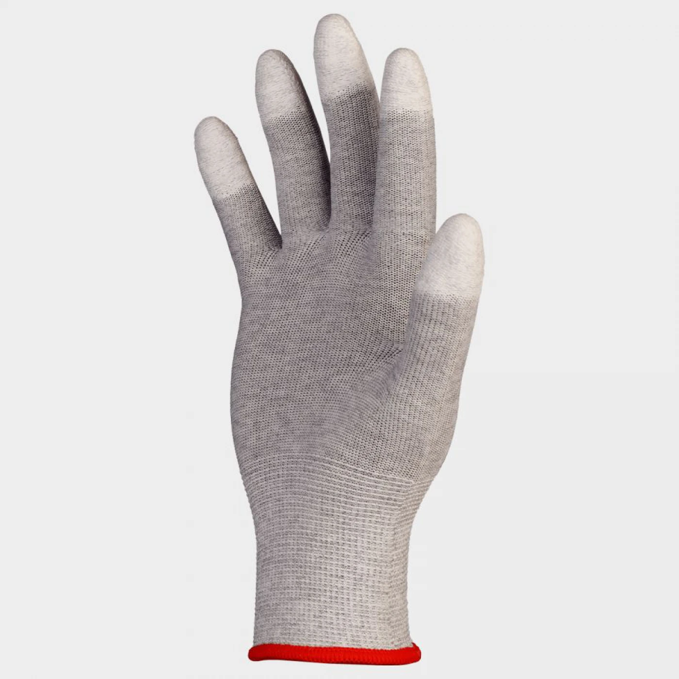 Mănuși fabriate din tricot de poliamidă antistatică cu fire de carbon, vârfurile degetelor înmuiate în poliuretan