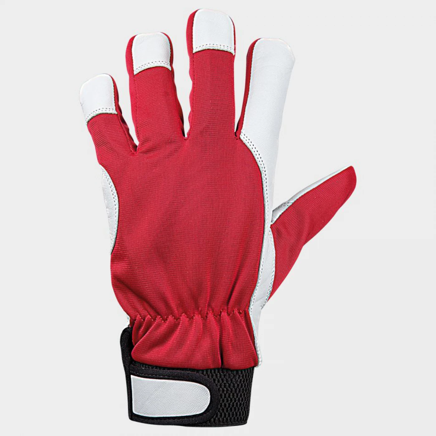 Mănuși cu cinci degete. Palmele și vârfurile degetelor sunt din piele de capră. Spatele mănușii este din material textil. Manșeta este elastică cu închidere cu velcro. Căptușeală din poliester rezistentă la frig.
