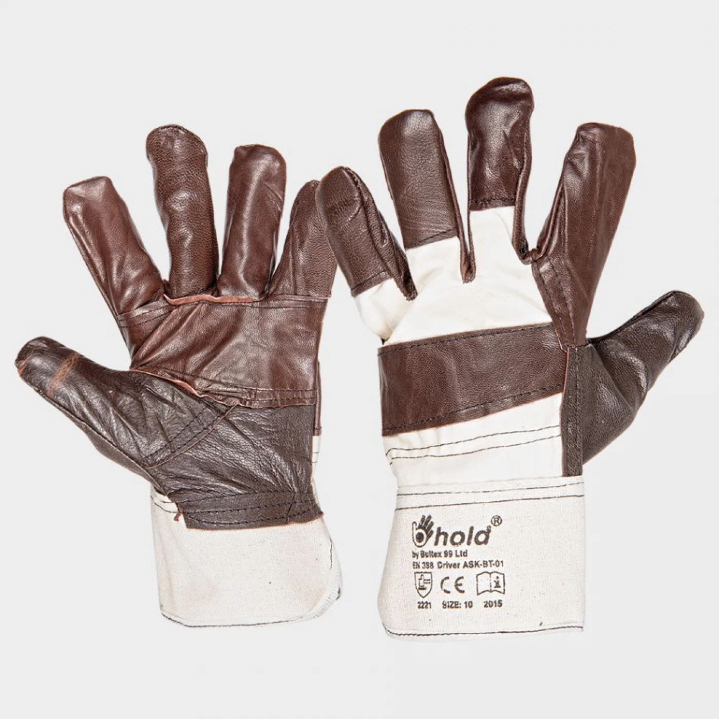 Mănuși din piele facială de vițel, pe palmă cu căptușeală, spate din material de bumbac, manșetă întărită.