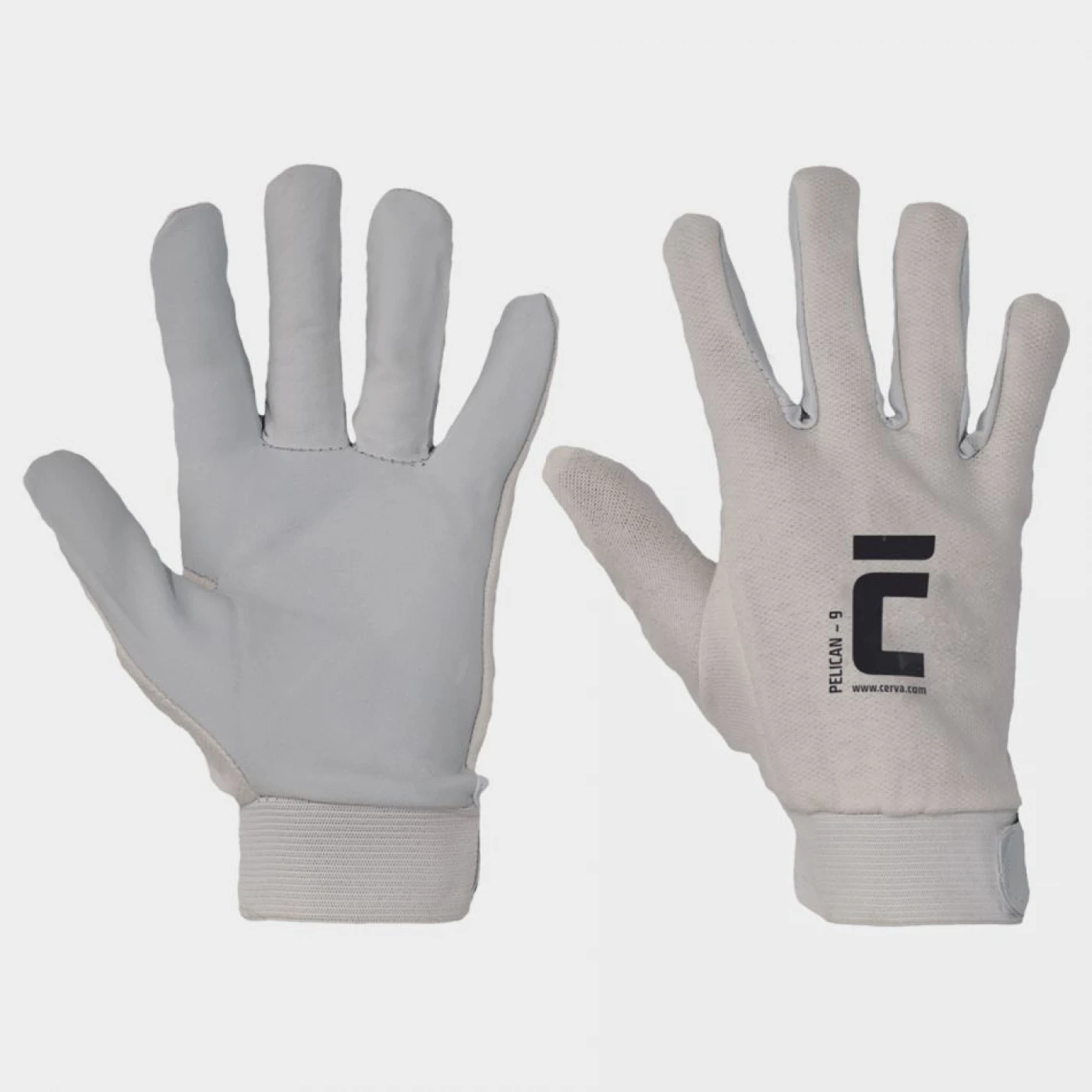 Mănuși din piele de iezi, fină pe palmă, spate din material de bumbac, manșetă reglabilă cu velcro.