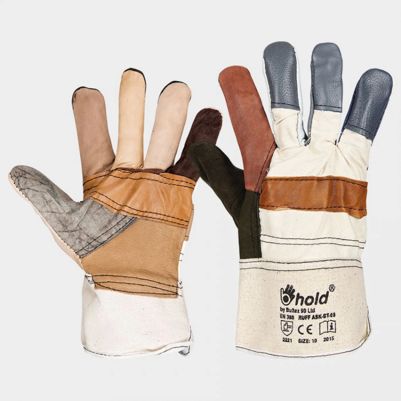 Mănuși din piele de vițel multicoloră și țesătură cu căptușeală și manșetă din bumbac.