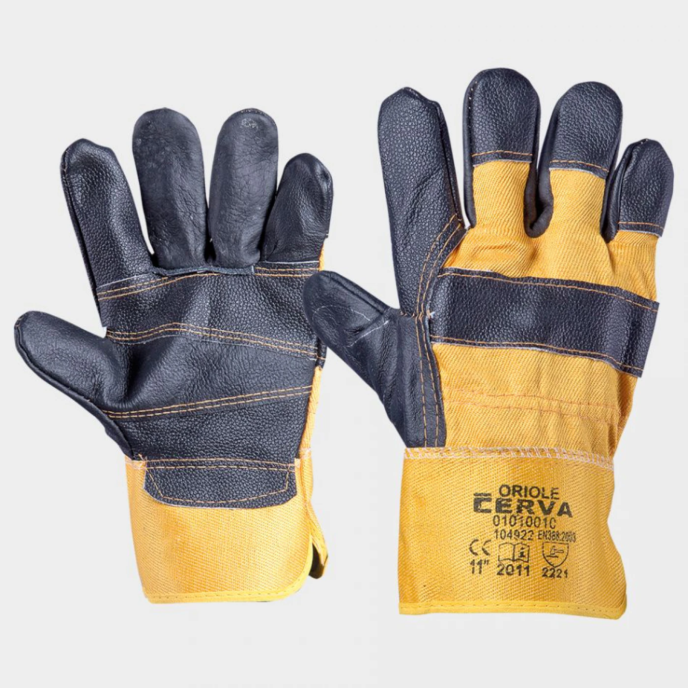 Mănuși din piele de vițel cu palma căptușită, spate din material de bumbac, manșetă întărită.
