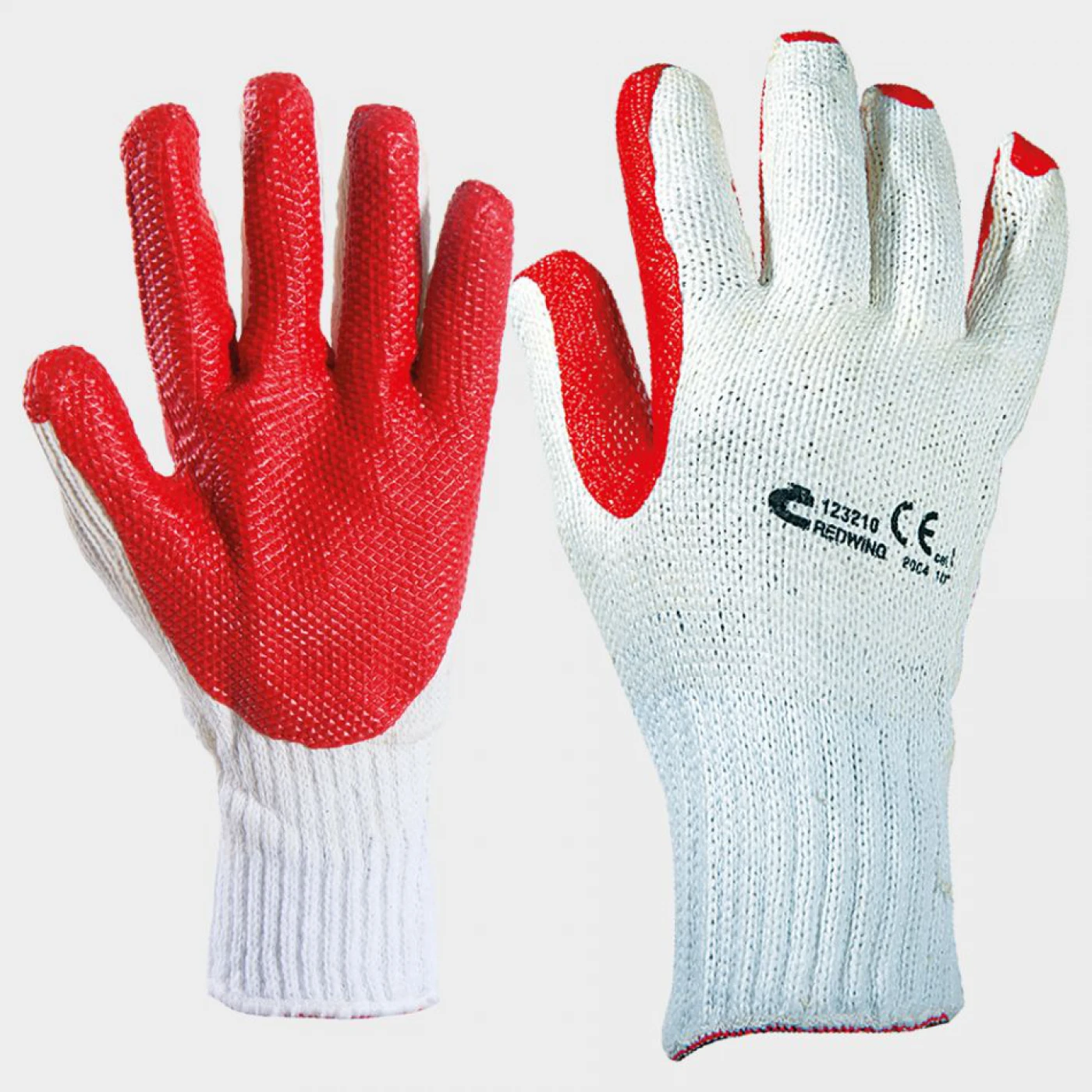Mănuși din bumbac/poliester tricotat rezistent, fără cusături, îmbinat cu latex, strat suplimentar în zona palmei și a degetelor, cu manșetă elastică.