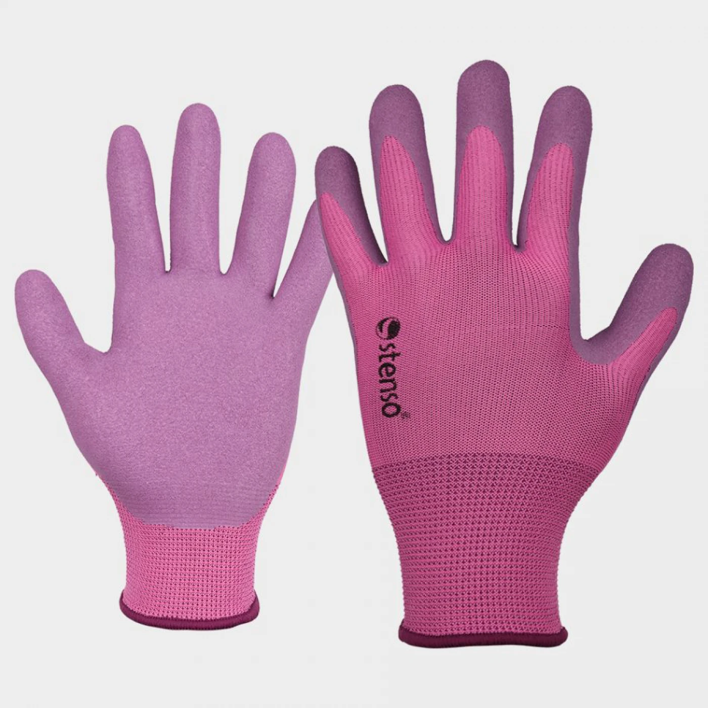 Mănuși de damă din tricot, fără cusături, țesătură din poliester 13G. Palma și degetele înmuiate în latex, spate respirabil, manșetă elastică.