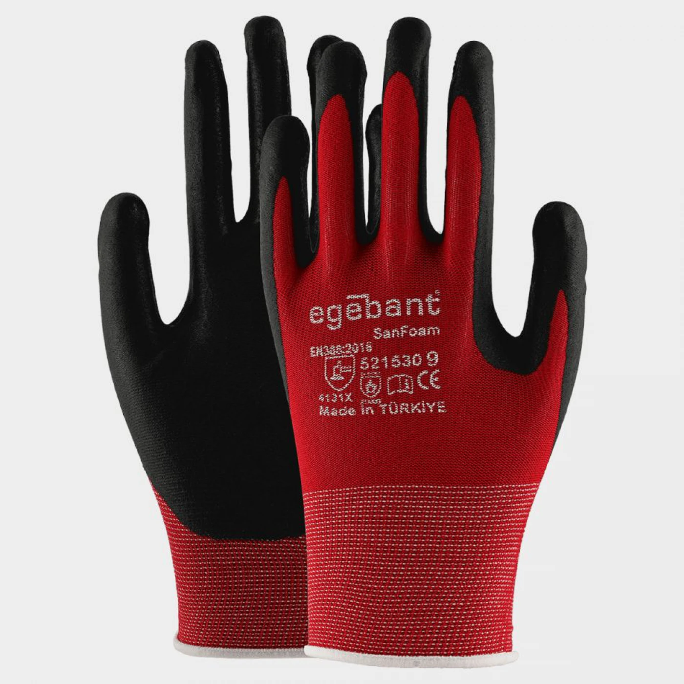 Mănuși de lucru din poliamidă cu înveliș din spumă de nitril, concepute pentru confort, flexibilitate și precizie în asamblare și lucrări mecanice.