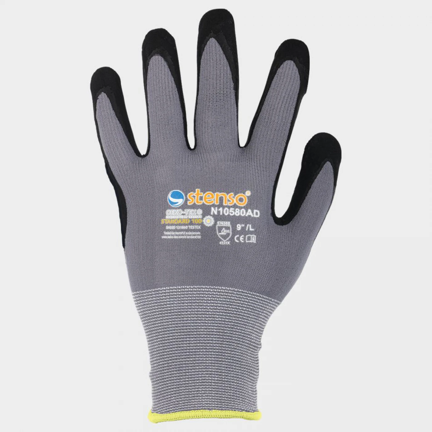 Mănuși din poliamidă / lycra cu fir de 15G, înmuiate în nitril microporos, sensibilitate perfectă, rezistență foarte bună la mediu uleios și apos.