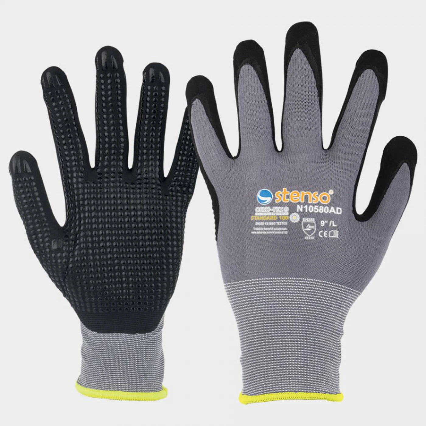 Mănuși din poliamidă / lycra cu fir de 15G, înmuiate în nitril microporos, cu picături de nitril