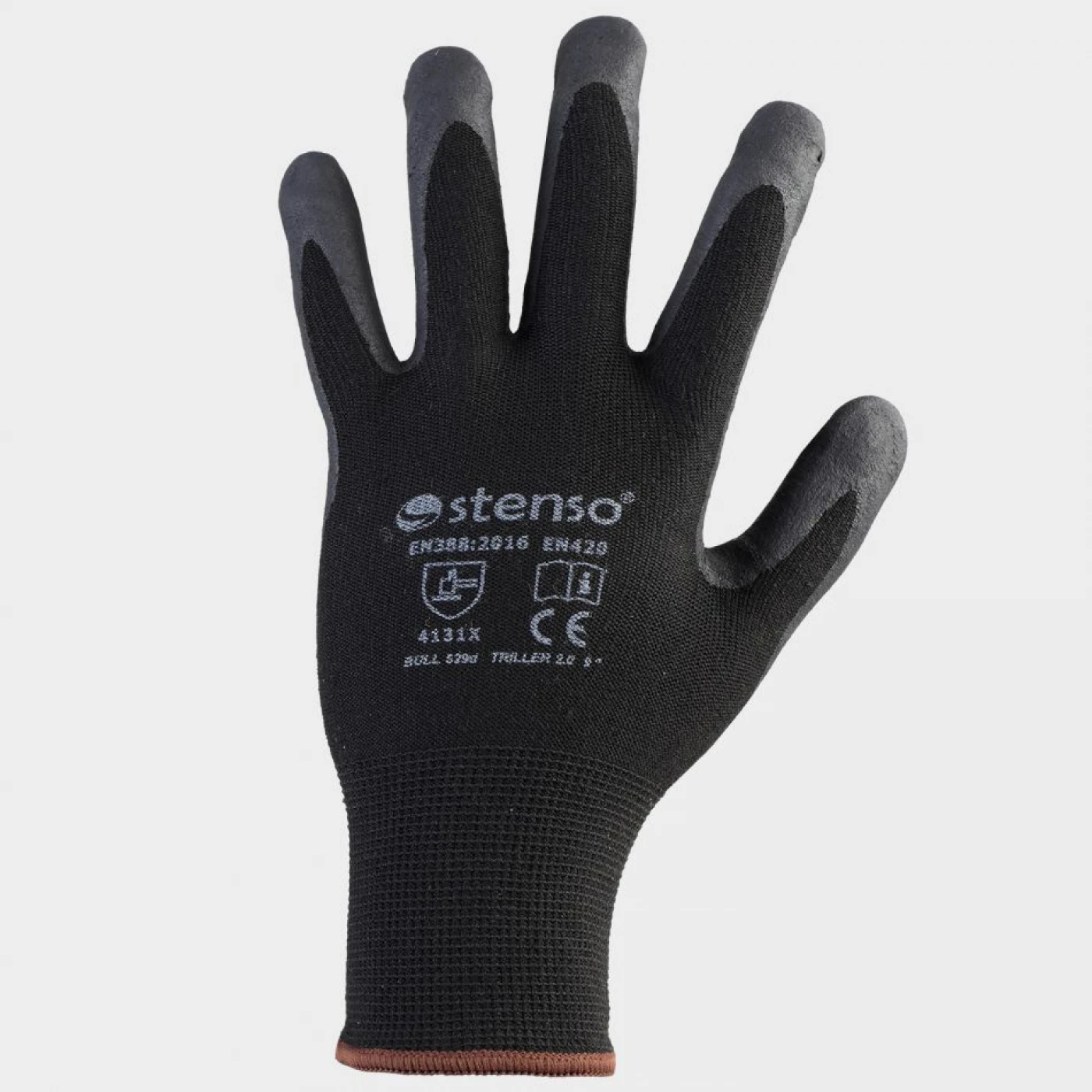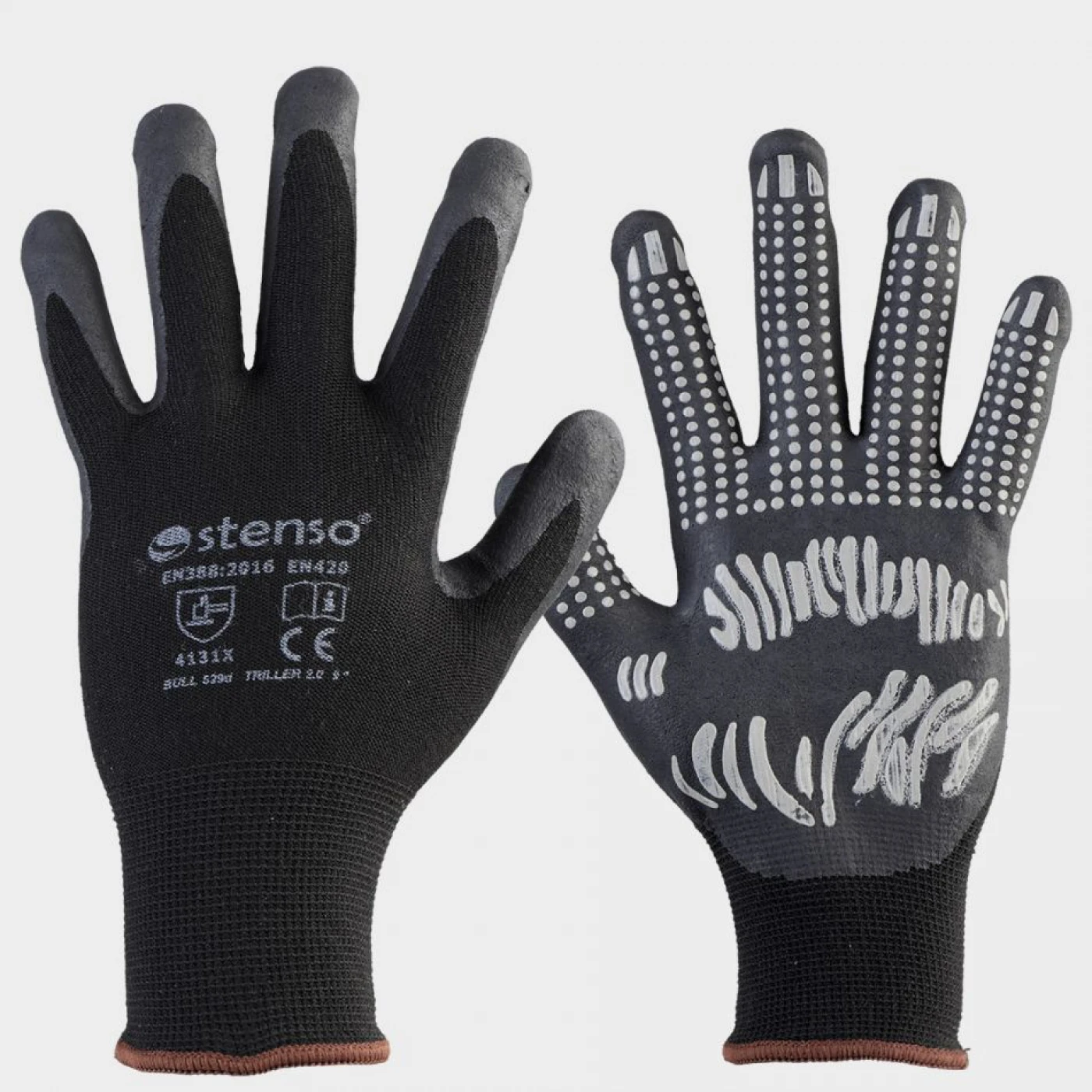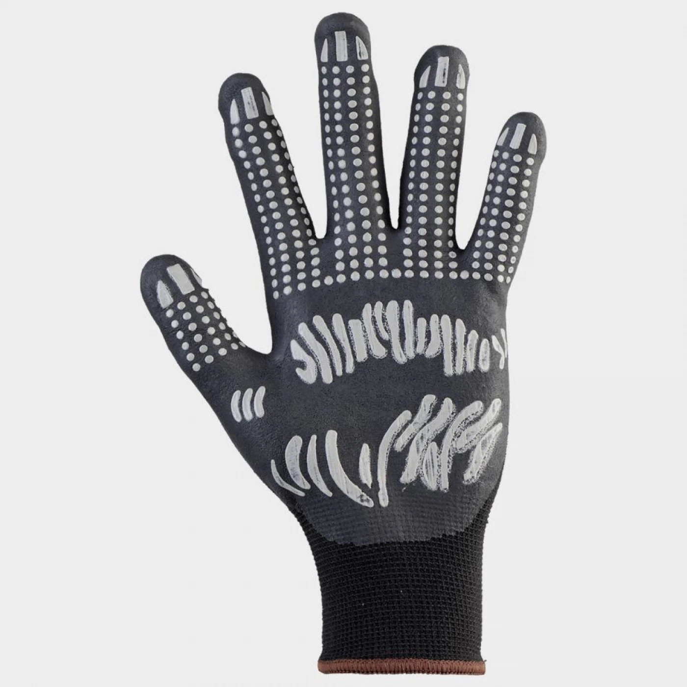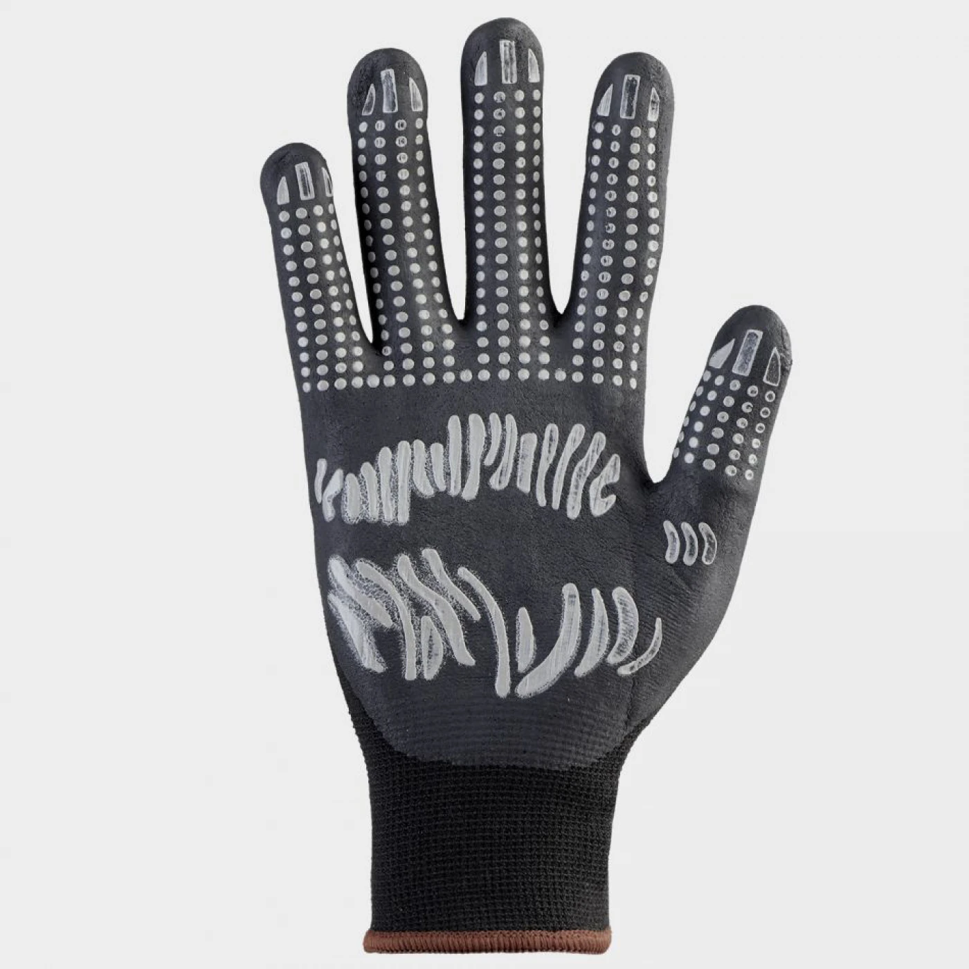 Poliamidă neagră (ecartament 13) cu interior acrilic, potrivită pentru condițiile de iarnă. Acoperire cu micropolumă biopolimerică pe palme, cu puncte în relief