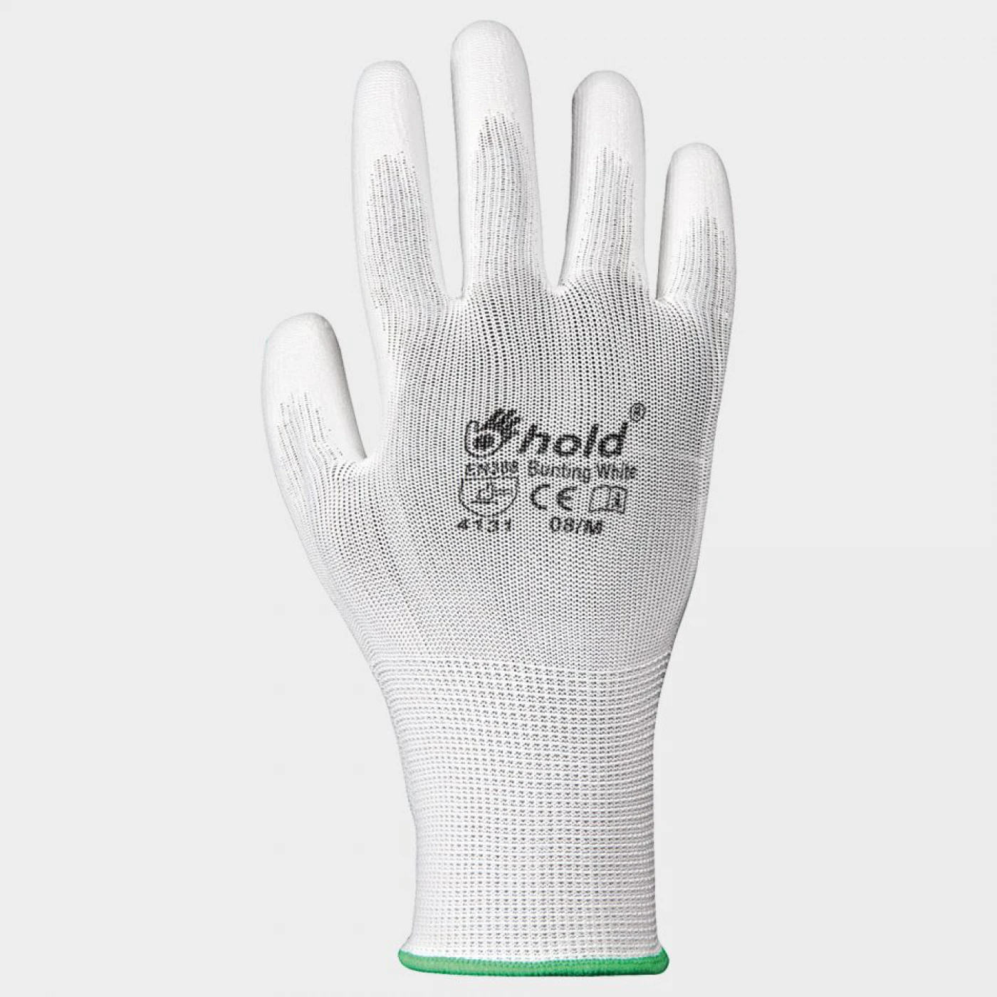 tricotați de poliamidă, înmuiate într-un strat subțire de poliuretan în zona palmei și degetelor, cu o manșetă elastică.