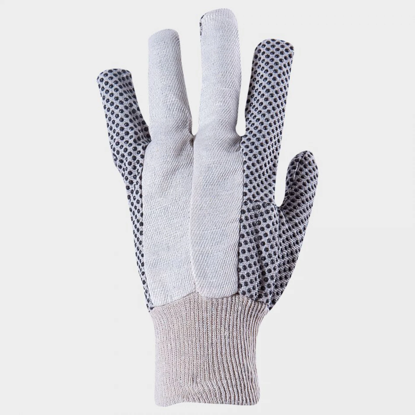 Mănuşi cusute - ţesătură groasă din bumbac, palma şi degetele cu puncte negre din PVC, manşetă din tricot elastic.