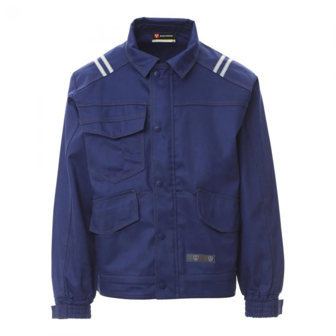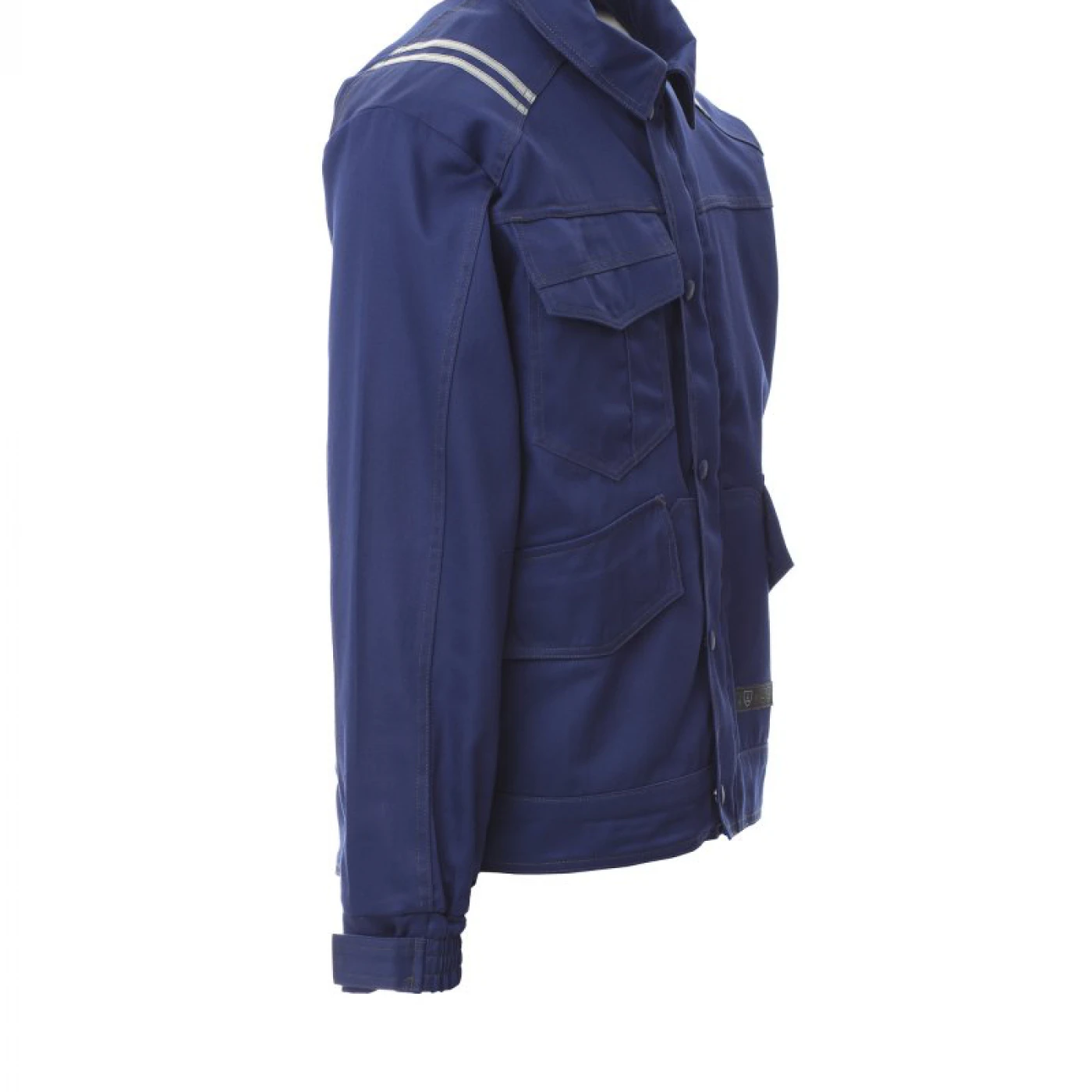 Jacheta de protectie ignifuga, antistatica, antiacida si cu protectie la arc electric. Confectionata dintr-un amestec de 98% bumbac si 2% fibra disipativa. Inchiderea frontala sa face cu ajutorul unui fermoar acoperit cu o clapeta cu inchidere cu velcro. Echipata cu buzunar pe partea dreaptă la piept cu suport pentru stilou și clapă cu închidere cu velcro. Manecile sunt ajustate cu mansete elastice si au inchidere cu banda velcro. \n