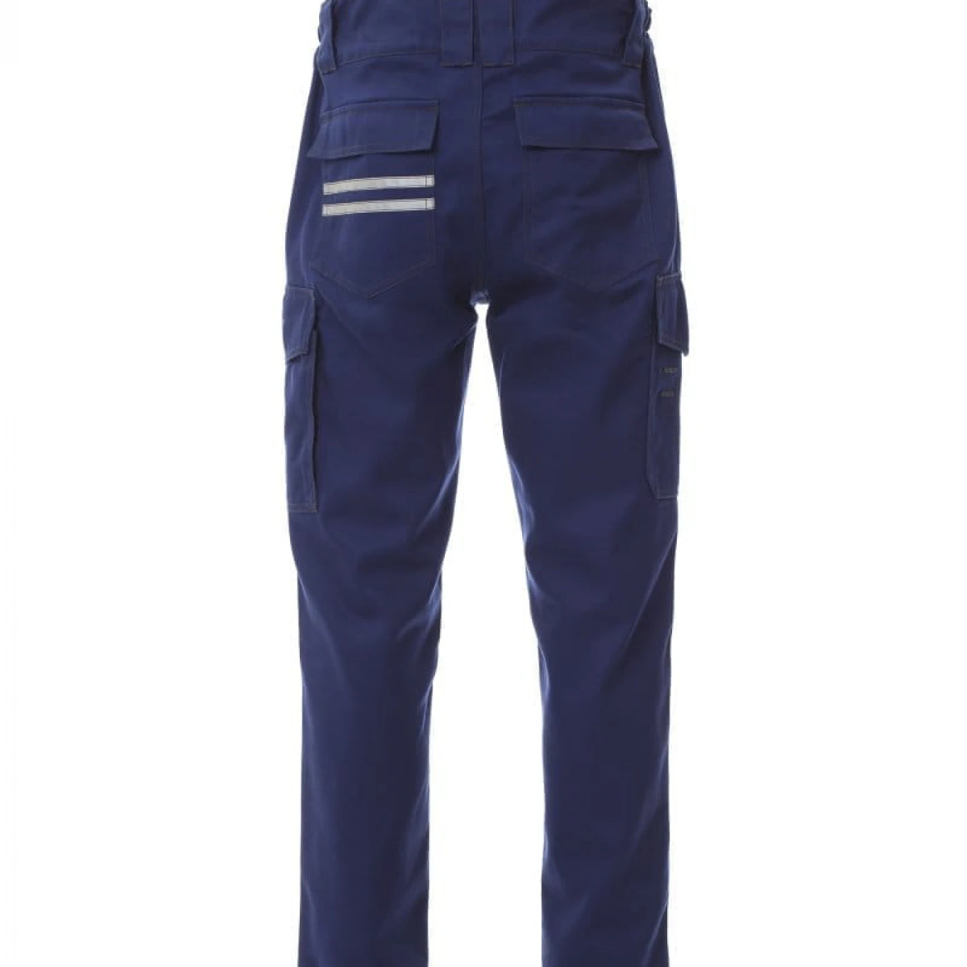 Pantaloni talie de protectie confectionati dintr-un amestec de 98% bumbac si 2% fibra disipativa. Sunt ignifugi, antistatici, antiacizi si ofera protectie la arc electric. Pentru o acoperire mai buna, partea din spate a taliei este mai inalta si prevazuta cu parti elastice pentru o strangere cat mai usoara. Echipati cu doua buzunare frontale cu croială clasică, două buzunare multifuncționale plus un buzunar cu fermoar și două buzunare la spate, toate cu clapă și închidere cu velcro. Dungi retroreflectorizante 3M pe buzunarul din spate. \n