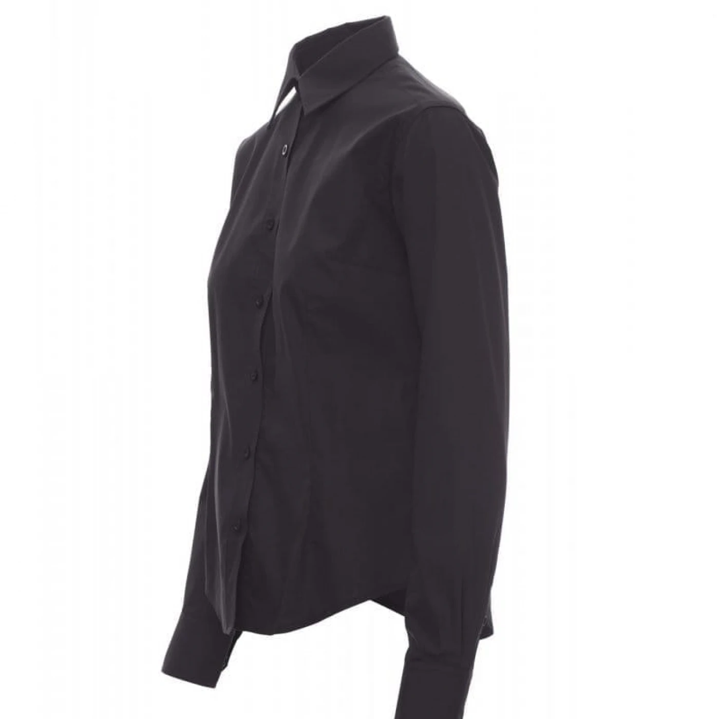Cămașă pentru femei confecționată dintr-o țesătură fină cu 65% poliester si 35% bumbac. Croiala este ușoară, cu guler în stil italian și manșetă croită cu 2 nasturi și butoniere, plăcuță cusată cu nasturi asorți. Înapoi cu jug și săgeți. Țesătura este ușor de întreținut și călcat (easy-care). \n