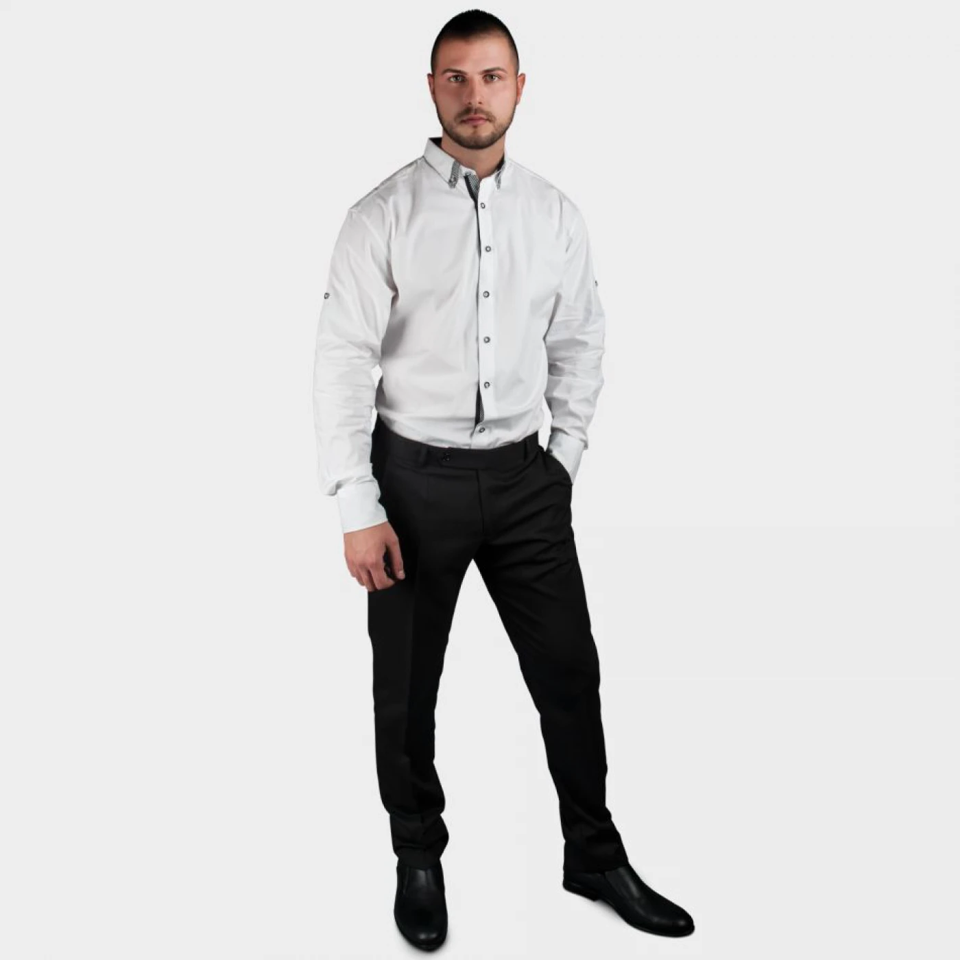 Cămașă cu mânecă lungă pentru bărbați. Are opțiune de mâneca scurtă prin rulare și prindere cu un buton.