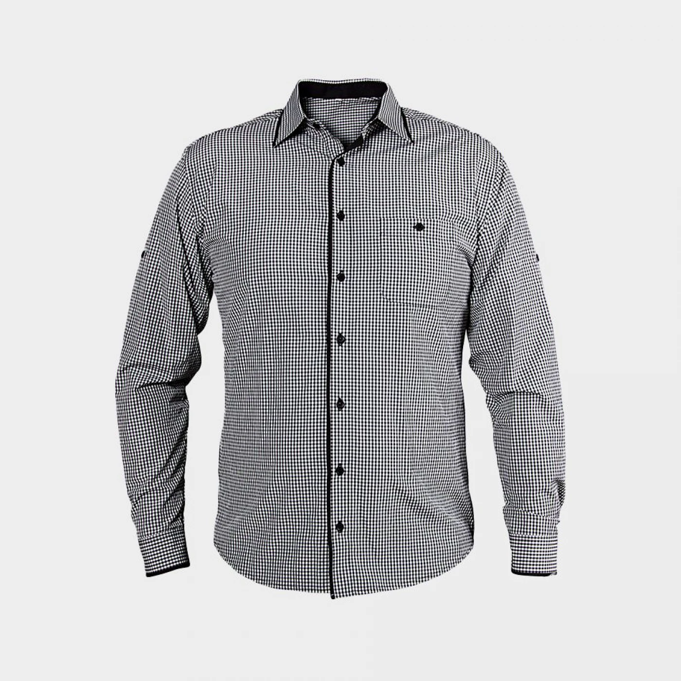 Cămașă pentru bărbați cu mânecă lungă. Buzunar exterior cu nasture.