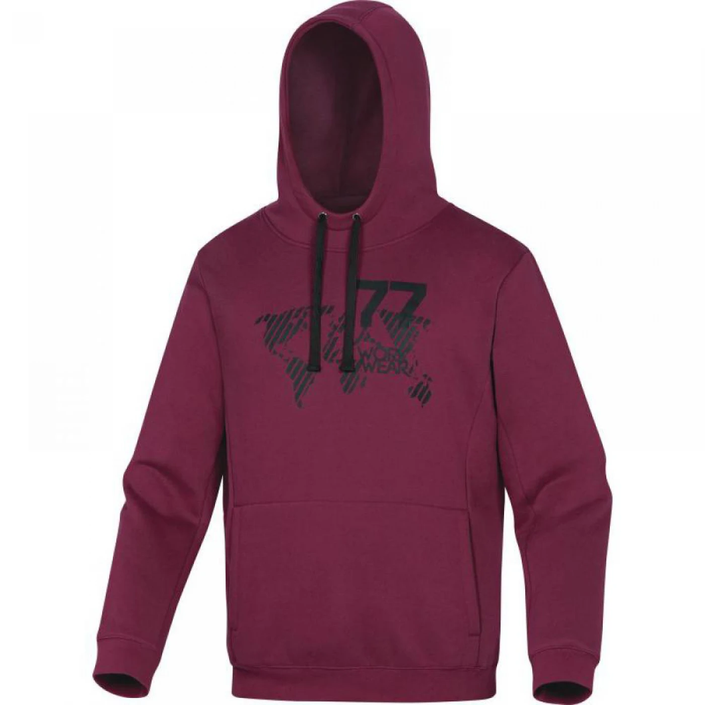 Sweat. Knitted cuffs and bottom of garment. 2 lower pockets. Adjustable hood with drawstring.