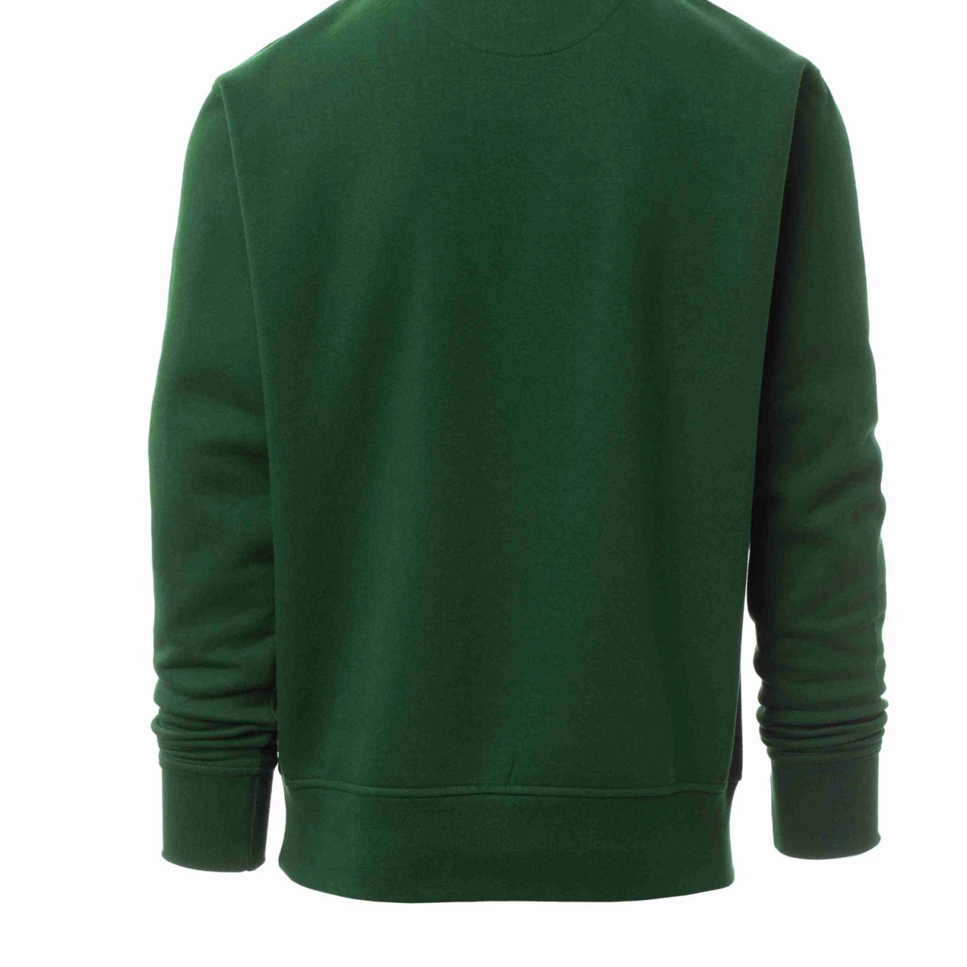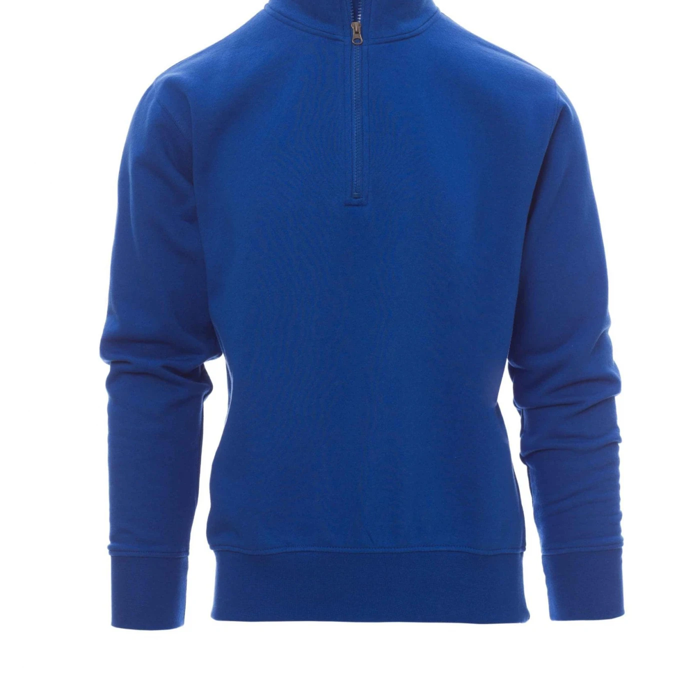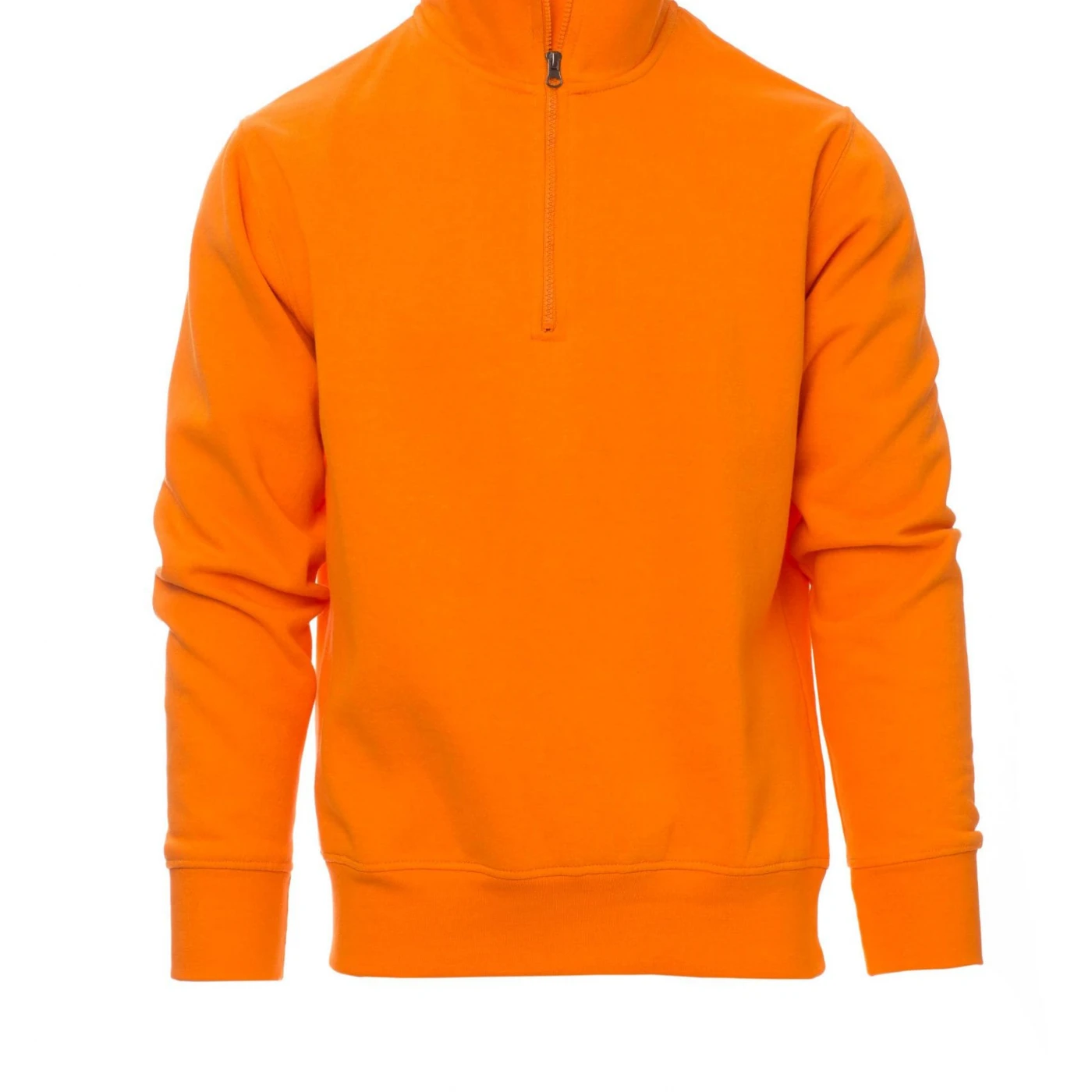 Bluză de trening pentru bărbați, cu fermoar la baza gâtului, într-o singură culoare, din plastic cu cursor metalic, mânecă ajustată, cu bandă elastică la manșete și în talie, cusături întărite.