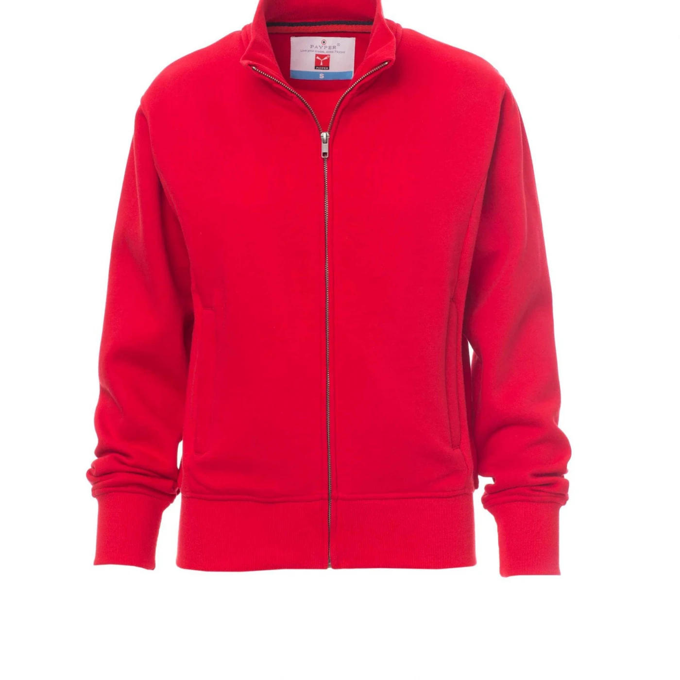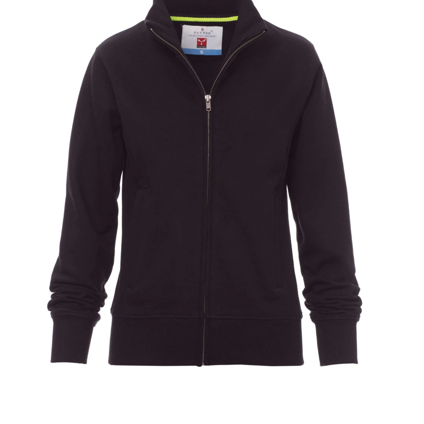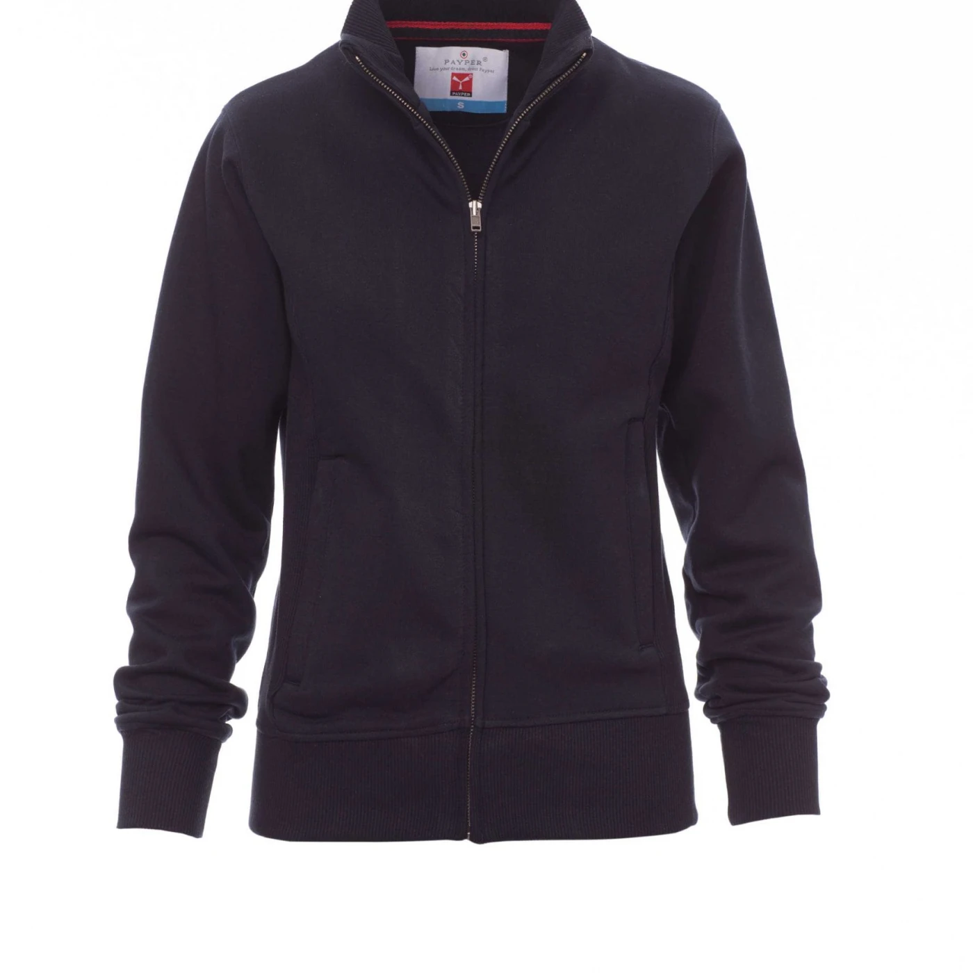 Bluză ajustată, pentru femei, cu fermoar integral SBS metalic, cu un singur cursor, bandă ergonomică cu nervuri în partea de jos a hanoracului, două buzunare cu fermoar, manșete, talie și guler cu bandă elastică, cusături întărite.