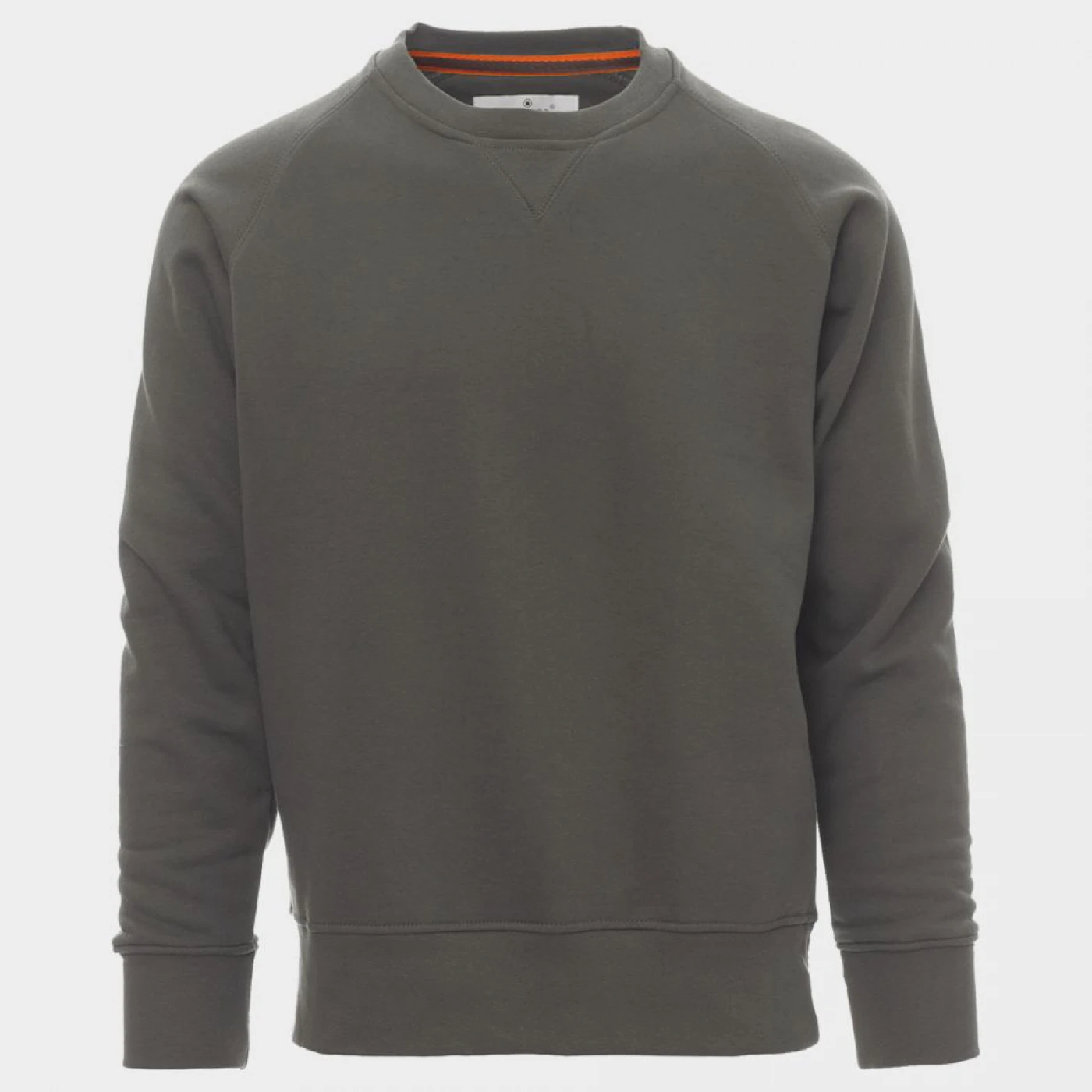 Bluză de trening pentru bărbați, cu guler rotund, mânecă raglan, cu cusătură în V estetică la nivelul gulerului. Bandă elastică la manșete și în talie, cusături întărite.