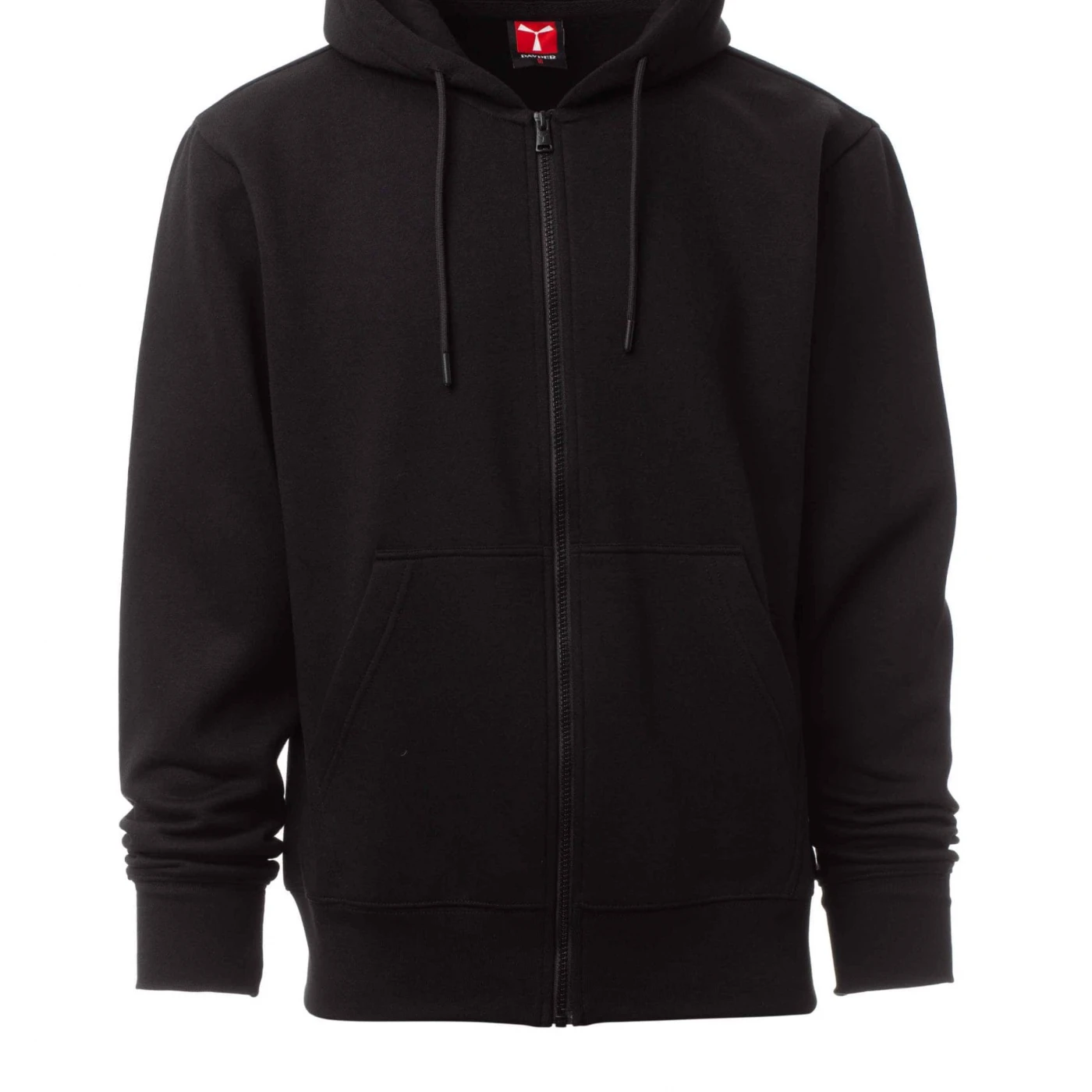 Hanorac pentru bărbați, cu fermoar integral din plastic și cursor simplu personalizat, glugă cu șnur și cusături în aceeași culoare, mânecă ajustată, buzunare tip marsupiu, bandă elastică la manșete și în talie. Cusături întărite, bandă de întăritură în interiorul gulerului în aceeași culoare.