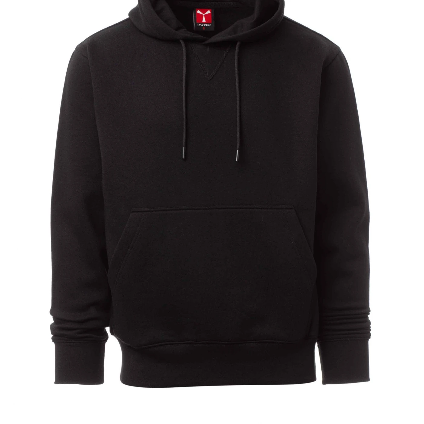 Hanorac pentru bărbați, glugă cu șnur în aceeași culoare, cusătură estetică în V la nivelul gulerului, buzunare tip marsupiu, bandă elastică la manșete și în talie, cusături întărite. Bandă de întăritură în interiorul gulerului în aceeași culoare.