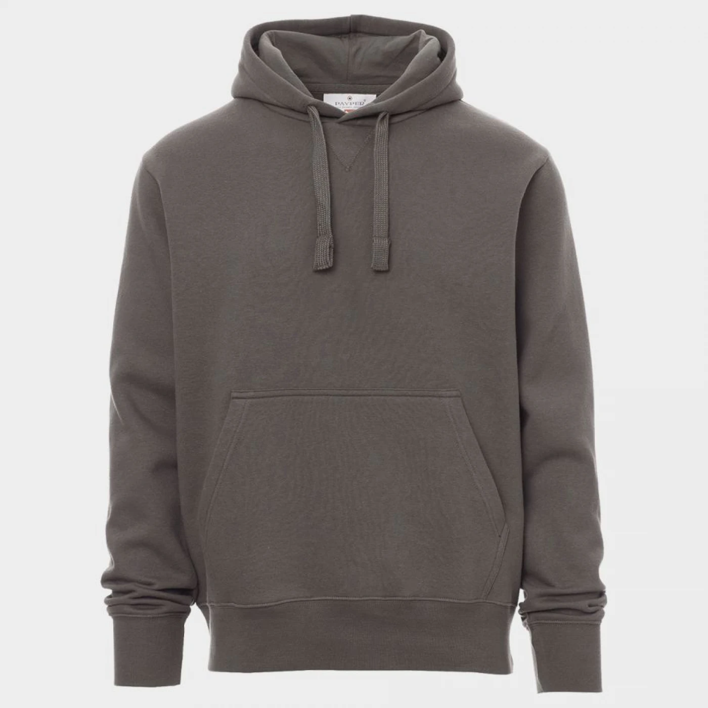 Hanorac pentru bărbați, glugă cu șnur în aceeași culoare, cusătură estetică în V la nivelul gulerului, buzunare tip marsupiu, bandă elastică la manșete și în talie, cusături întărite. Bandă de întăritură în interiorul gulerului în aceeași culoare.