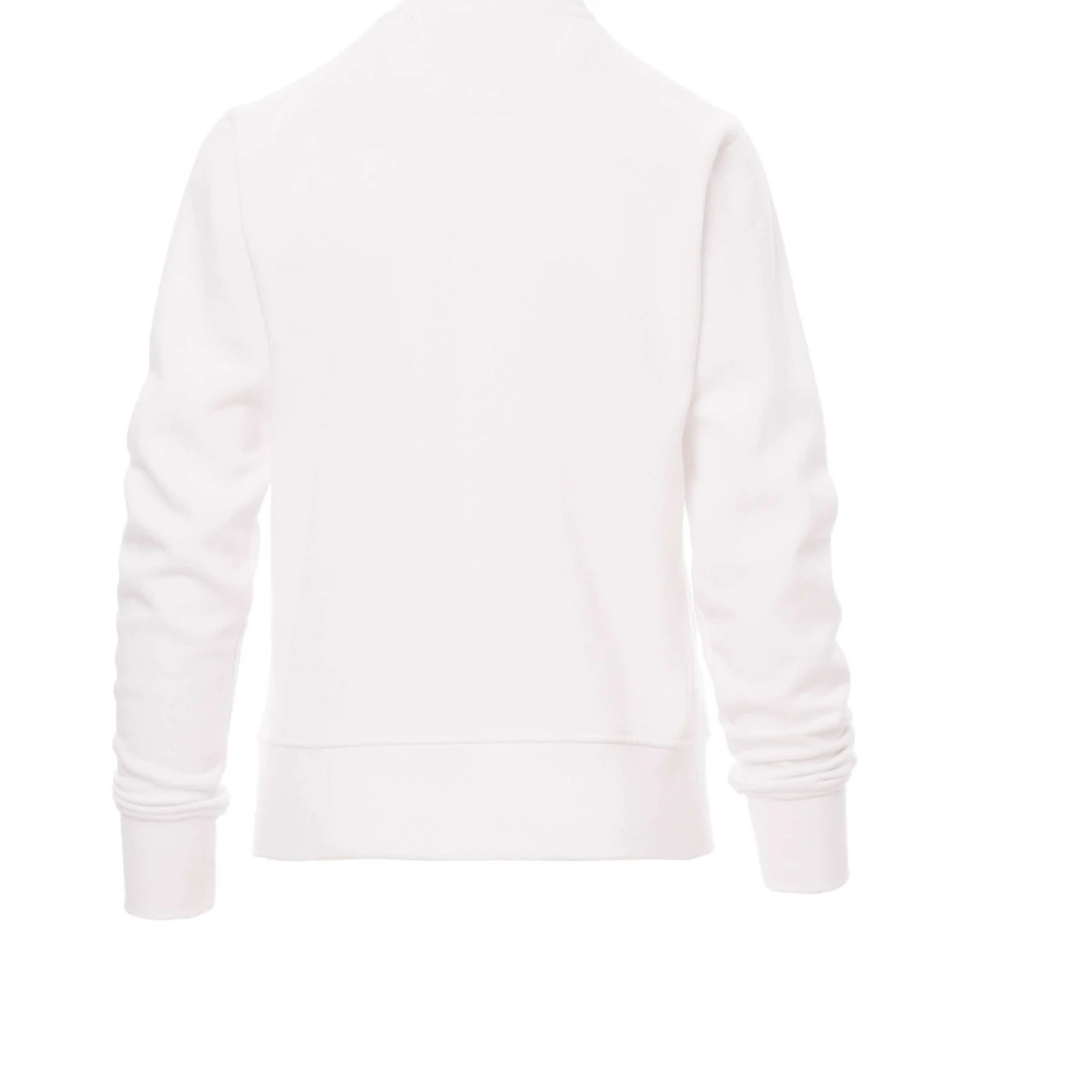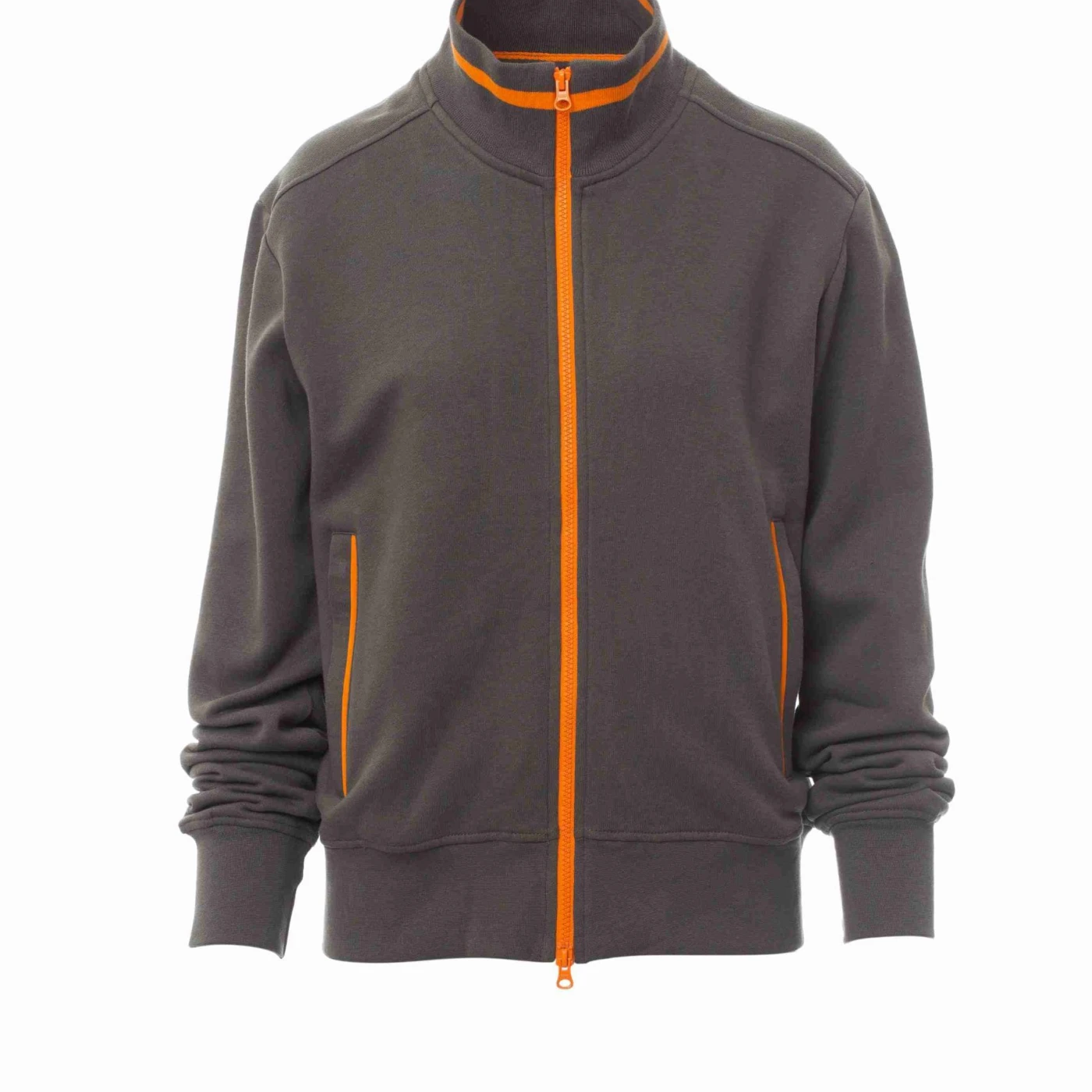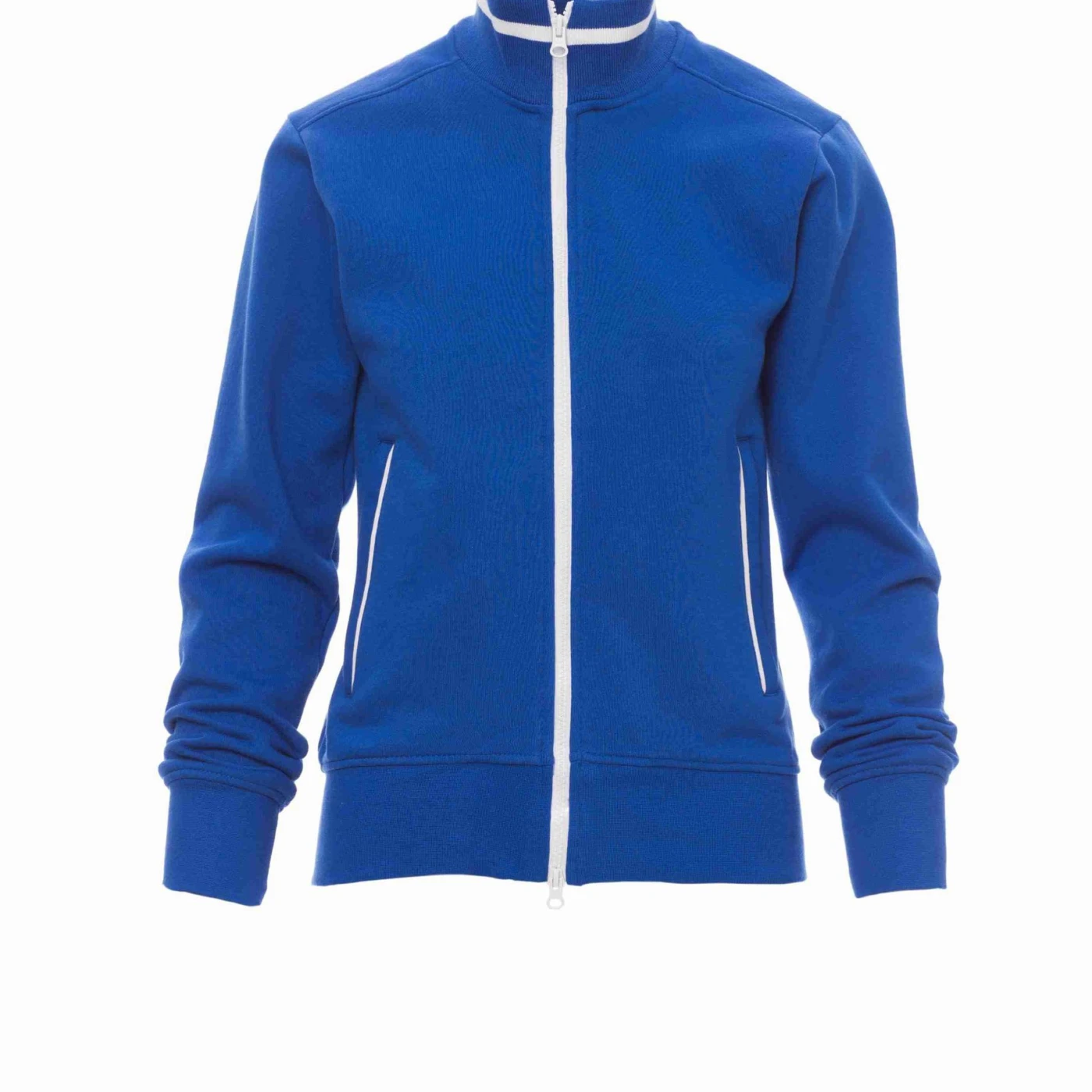 Bluză de trening ajustată pentru femei, cu fermoar integral SBS din plastic, în culoare contrastantă, cu cursor dublu metalic. Guler cu bandă elastică cu profil contrastant, prezent și la nivelul buzunarelor laterale, mânecă ajustată, două buzunare exterioare cu fermoar contrastant, bandă elastică la manșete și în talie. Cusături întărite.