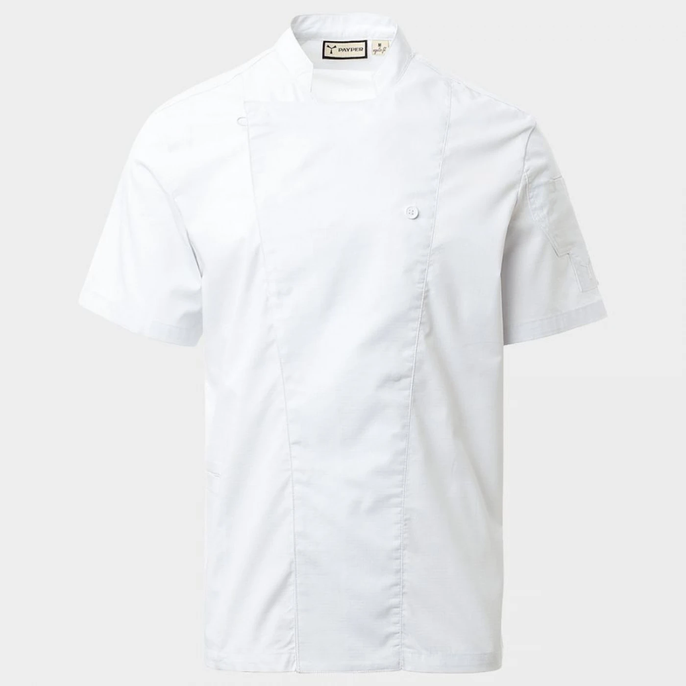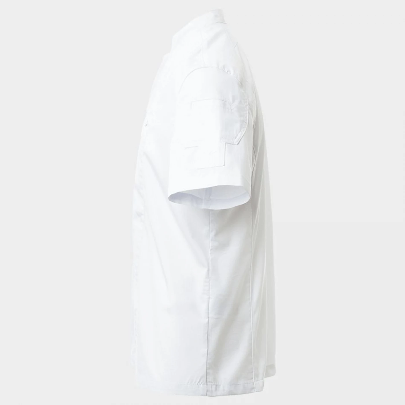 Tunică de bucătar cu guler drept, realizata din bumbac ripstop si Lycra® T400® pentru elasticitate și respirabilitate excelente.