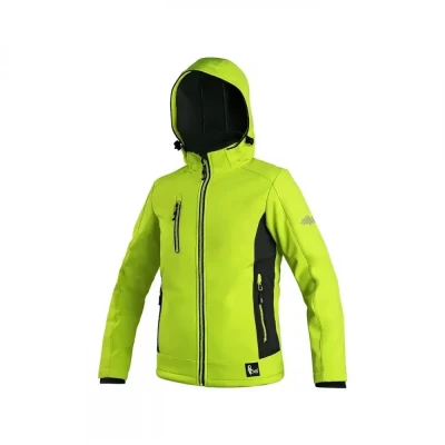 Jachetă softshell pentru copii cu glugă detașabilă, rezistentă la apă și vânt, manșete interioare elastice în mâneci, ajustare la bază, guler și căptușeală din fleece, 2 buzunare inferioare cu fermoar, buzunar pe piept cu fermoar, accesorii reflectorizante, membrană TPU, material rezistent la apă până la 10.000 mm, cu excepția cusăturilor și a materialului din jurul buzunarelor, respirabilitate de 3.000 g/m2/24h.