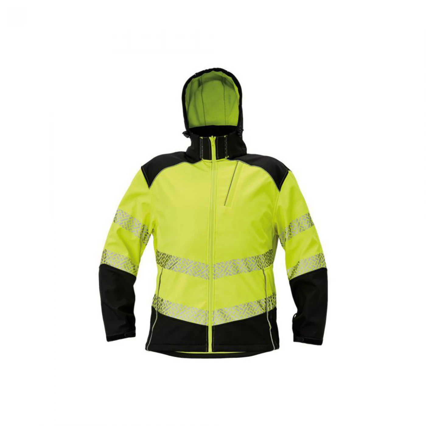 Jacheta de vant si ploaie, pentru barbati, cu gluga detasabila; versiune HI-VIS cu vipusca si benzi reflectorizante segmentate; 2 buzunare laterala cu fermoar, 1 buzunar cu fermoar la piept; circumferinta ajustabila cu snur; fermoar ascuns; cealalta fata in culoare negru cu elemente reflectorizante.