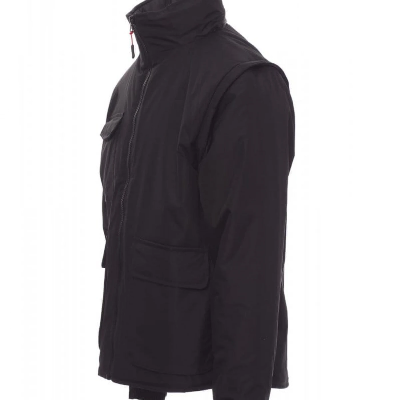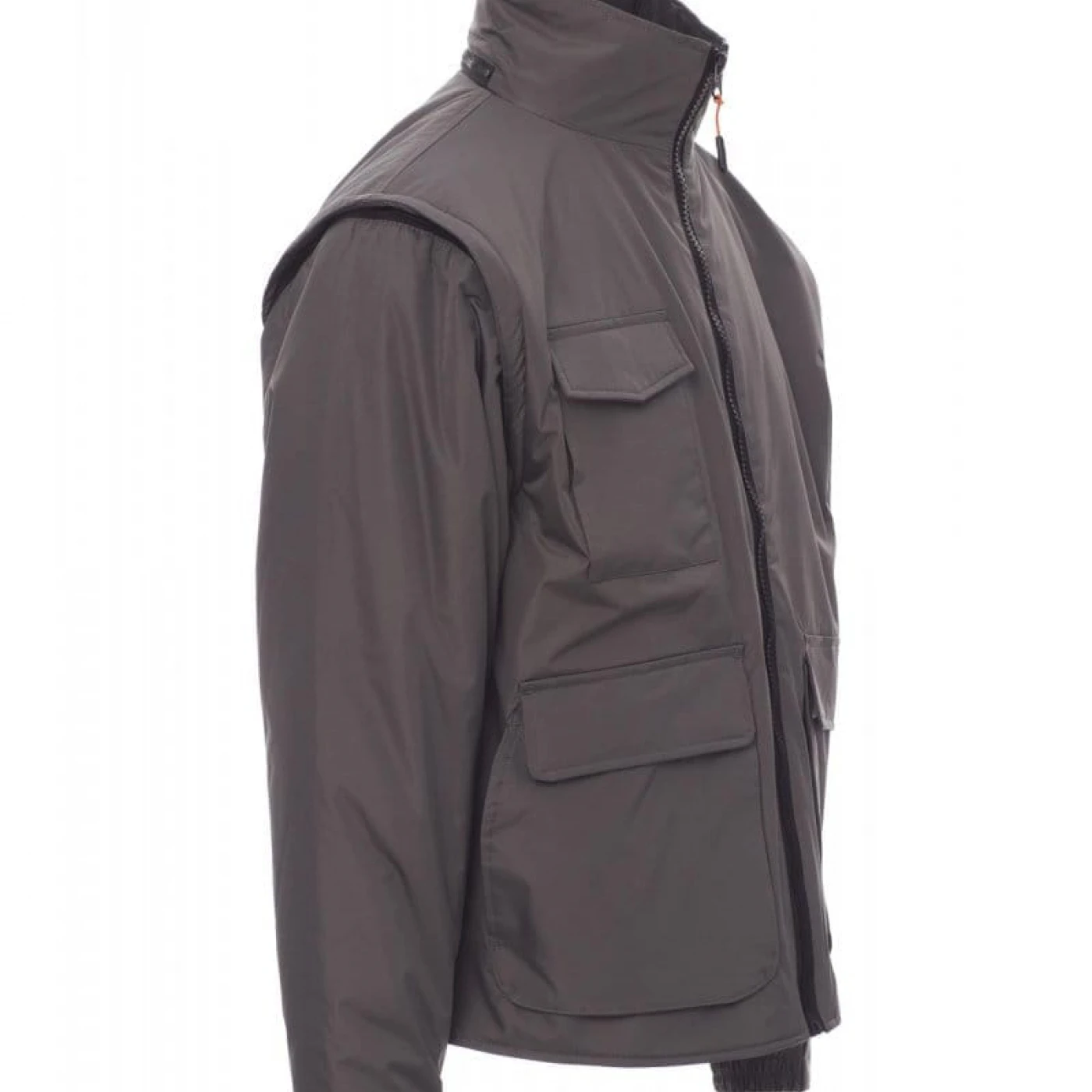 Jacheta pentru barbati ripstop pongee cu captuseala interioara, maneci detasabile si confectionata din 100% polyester. Gluga este pliabila iar inchiderea frontala se face cu un fermoar rezistent de 8 mm. Echipata cu doua buzunare incapatoare in partea din fata, doua buzunare lateral si un buzunar la piept pentru smartphone. \n