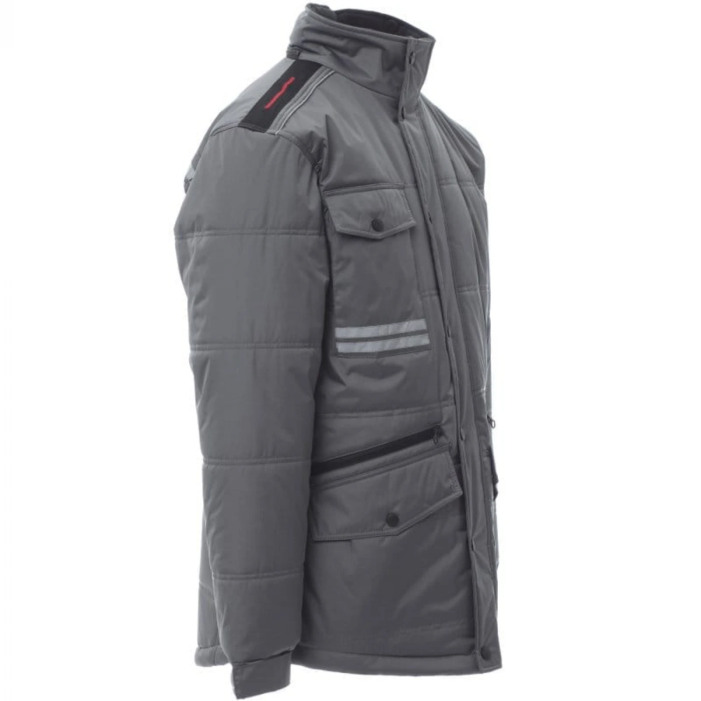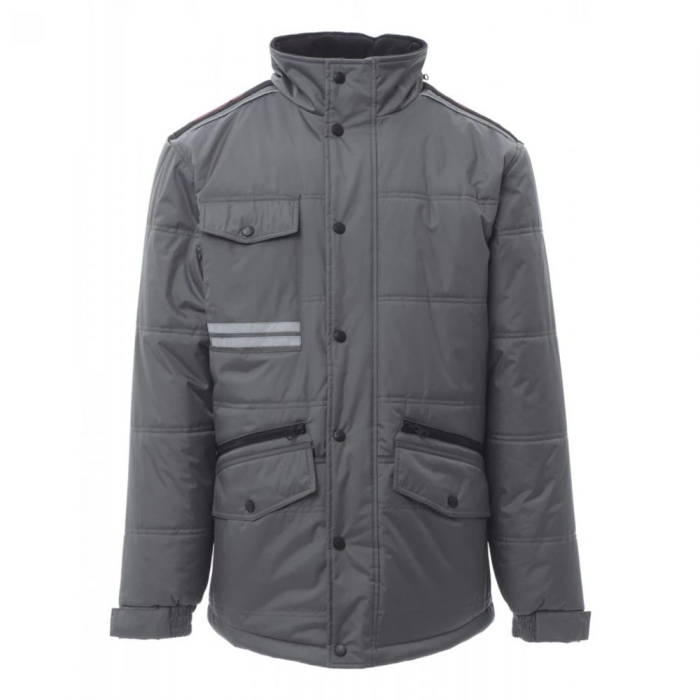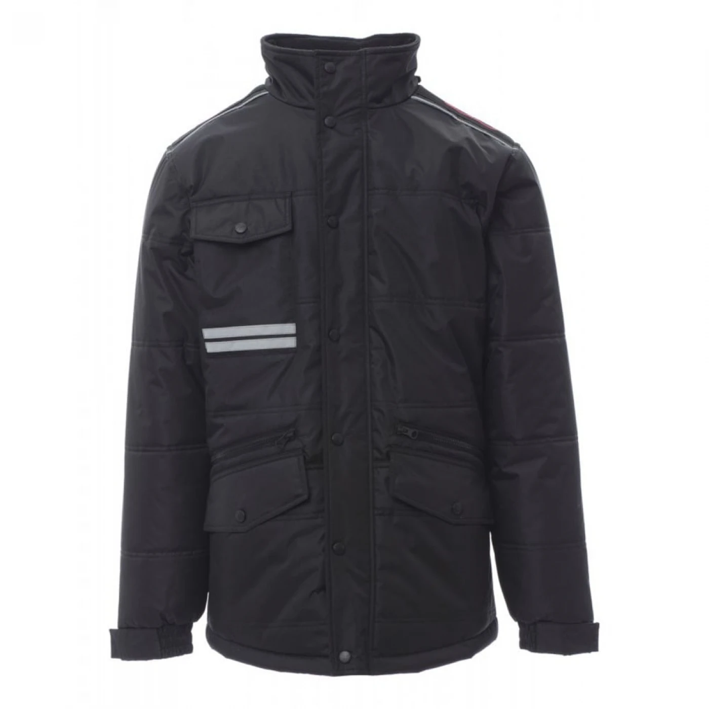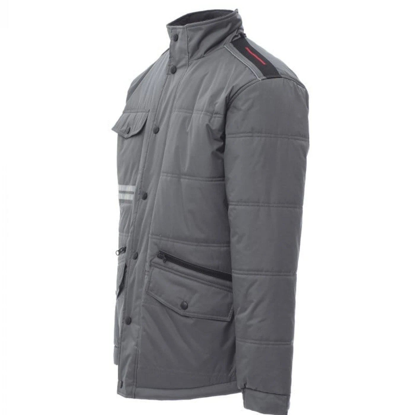 Jacheta lunga (3/4) de iarna pentru barbati captusita cu fleece pe interior. Asigura protectie in sezonul rece impotriva vantului (windproof) si ploii (waterproof). Are gluga pliabila si este echipata cu doua buzunare frontale clasice cu inchidere cu butoni, doua buzunare frontale suplimentare cu inchidere cu fermoar si un buzunar la piept cu inchidere cu buton. Pentru o vizibilitate sporita, jacheta prezinta doua dungi reflectorizante pe buzunarul din fata si doua dungi reflectorizante orizontale pe spatele jachetei.