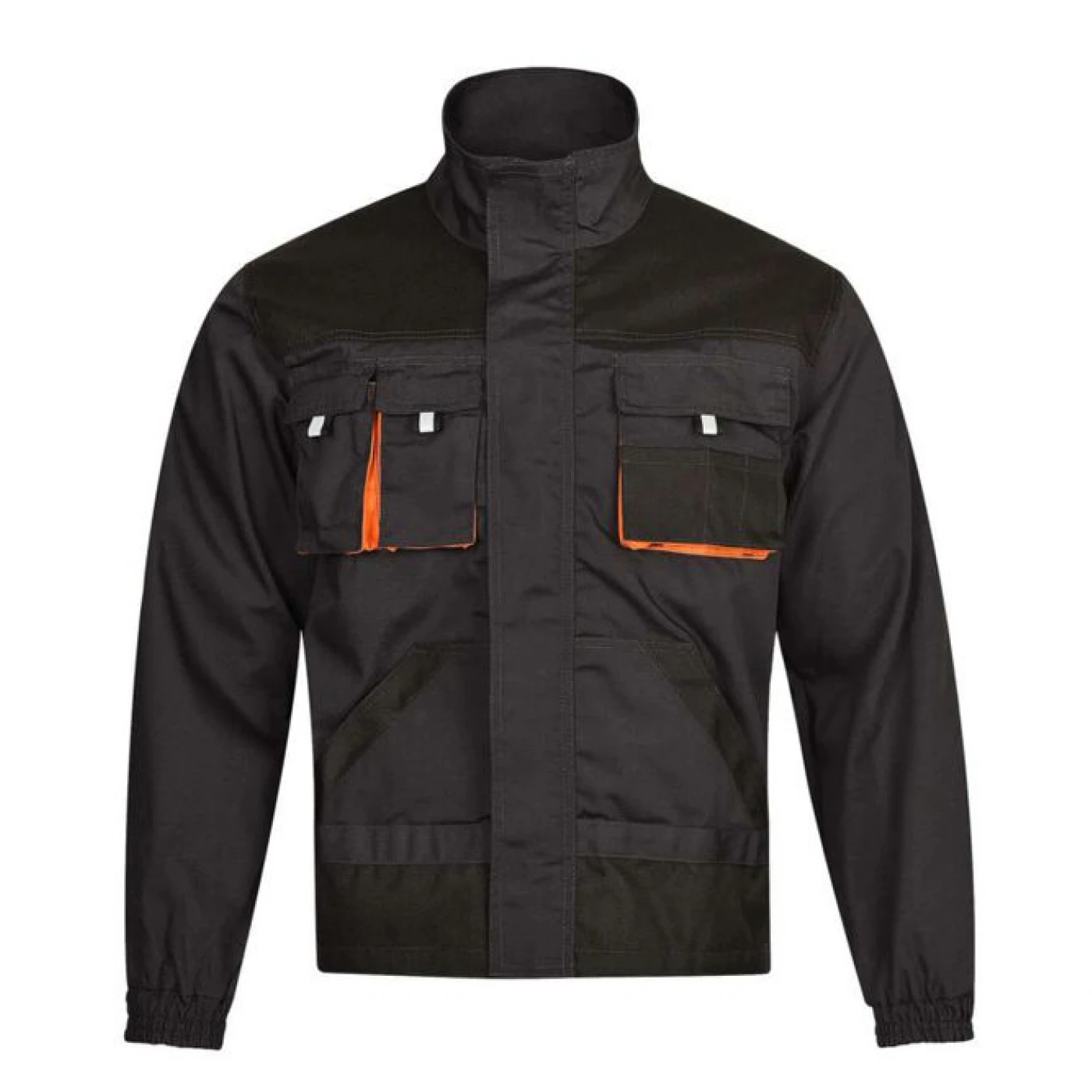 Jachetă de lucru cu întărituri Oxford 600D și ventilație sub braț \nPrevăzută cu inserții din material Oxford 600D în zonele expuse la uzură. Închidere frontală cu fermoar ascuns, buzunare superioare și inferioare pentru depozitare eficientă. Coate întărite, manșete din tricot și fermoar lateral cu plasă pentru ventilație în zona axilei.