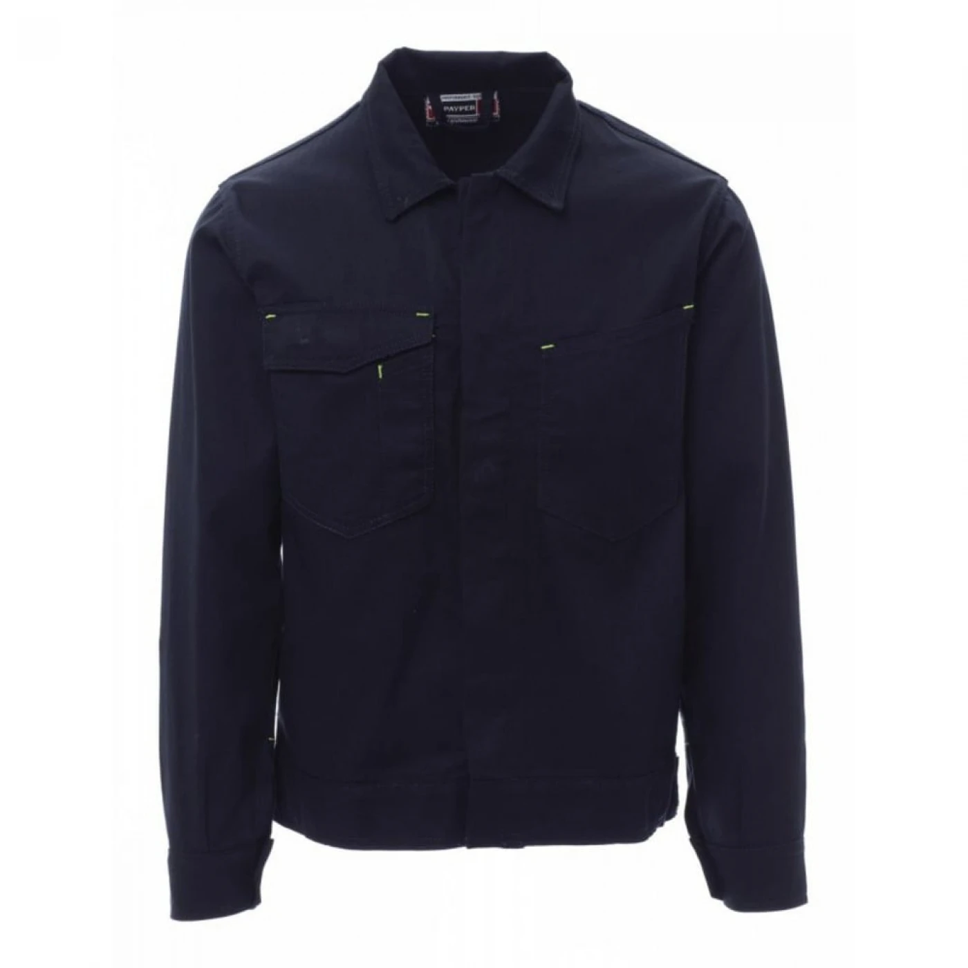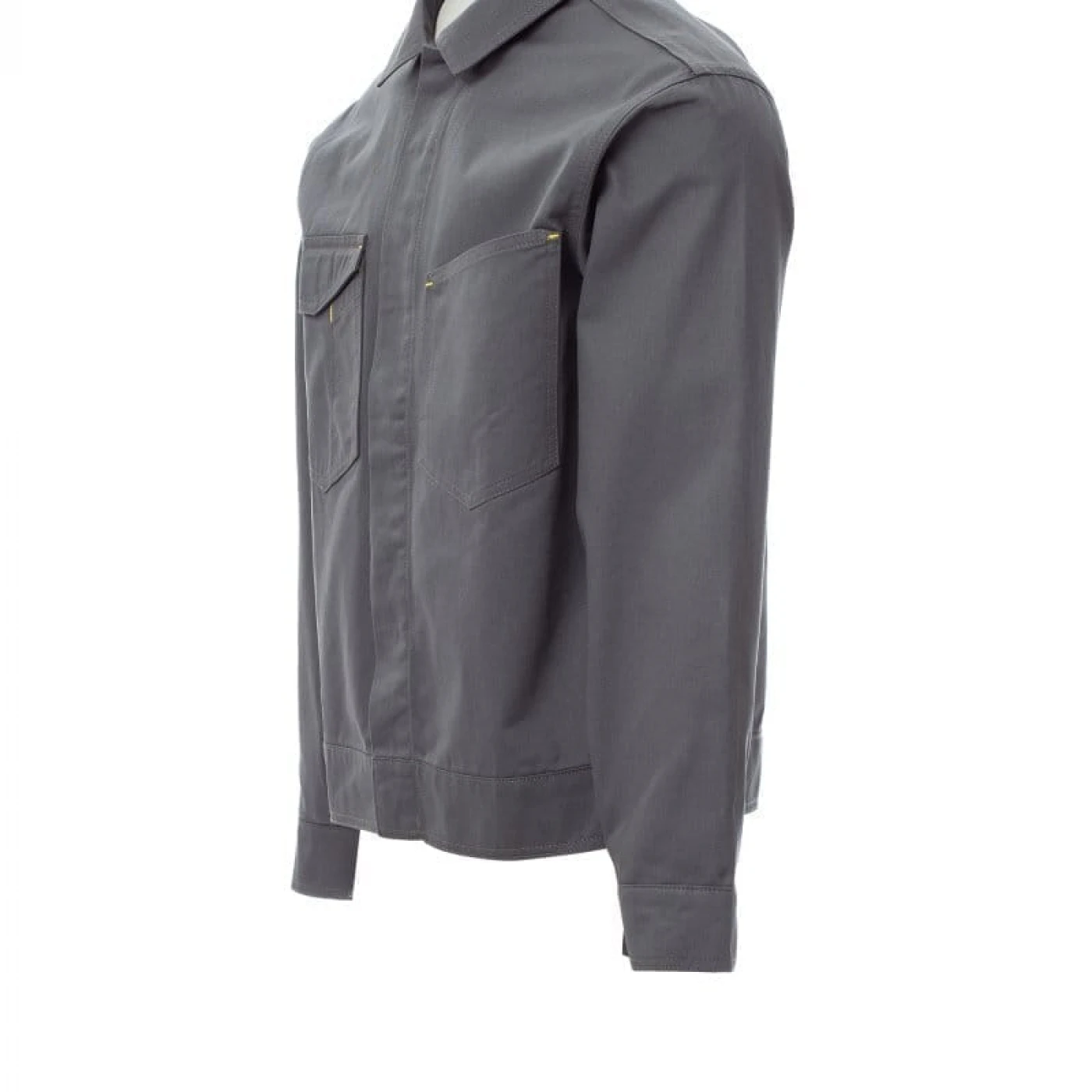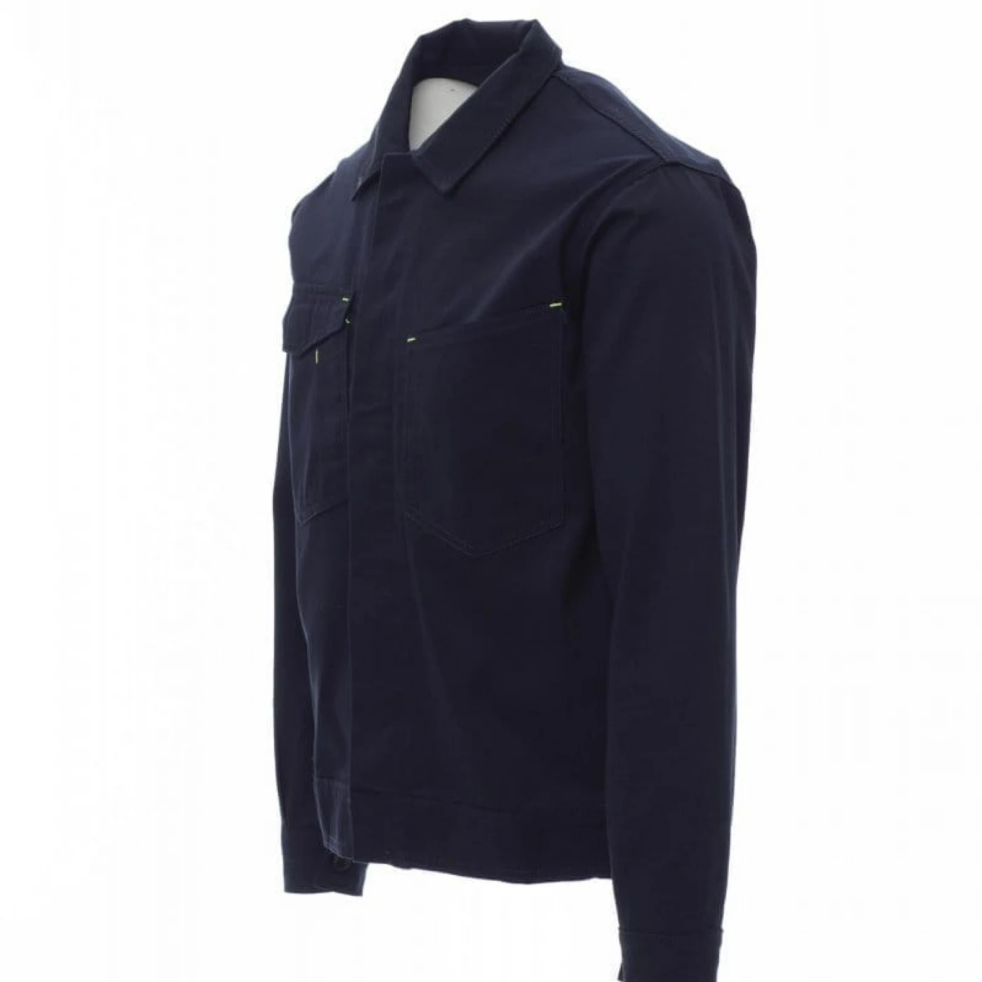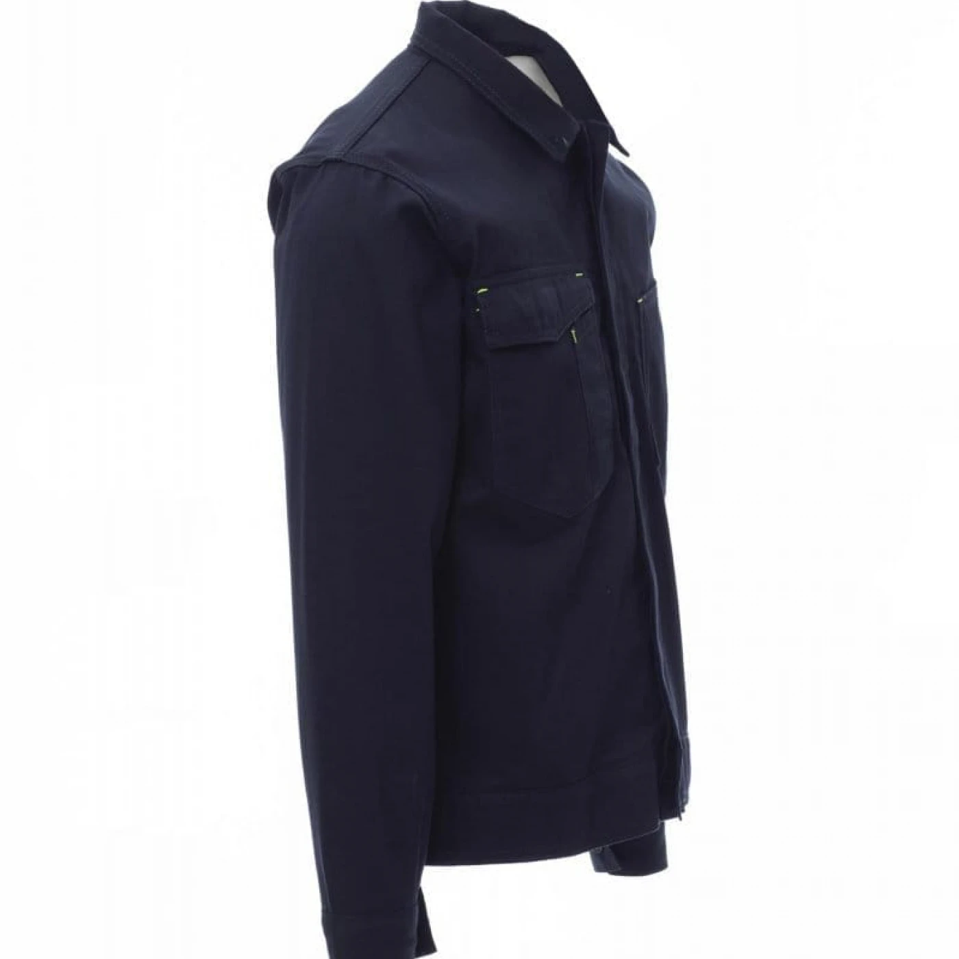 Jachetă de lucru unisex cu talie reglabilă, confecționată din bumbac 100% și accesorizată cu cusături reflectorizante. Este fără căptușeală, ceea ce o face ușoară și perfectă și pentru zilele de lucru mai calde. Este echipată cu două buzunare la piept dintre care unul cu suport pentru smartphone, suport pentru insignă, suport pentru stilou și închidere cu clapă si velcro. Închiderea frontală se face cu nasturi ascunși din plastic acoperiti de fenta, iar închiderea mansetei se realizeaza cu nasture. Se utlizeaza in medii cum ar fi: construcții, industrie ușoară, logistică, manipularea depozitelor, ateliere de reparații auto, întreținere, montaj, agricultură, grădină, hobby, etc.