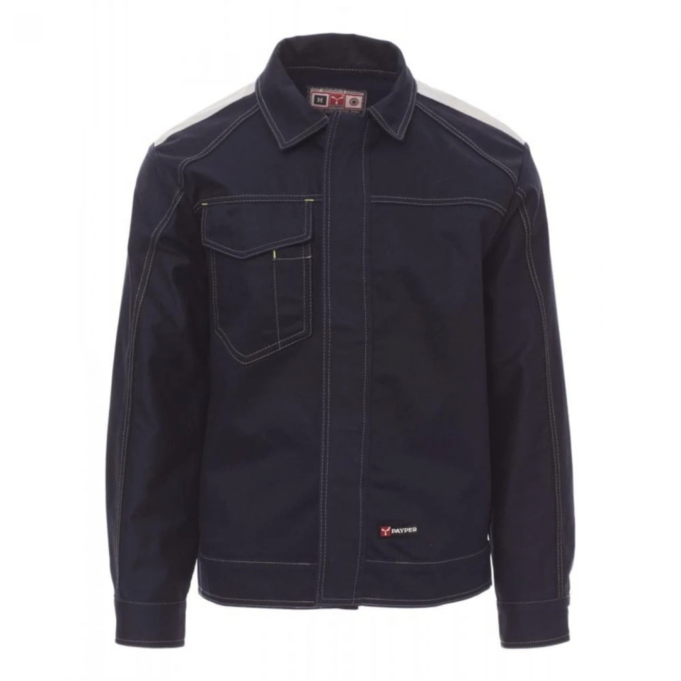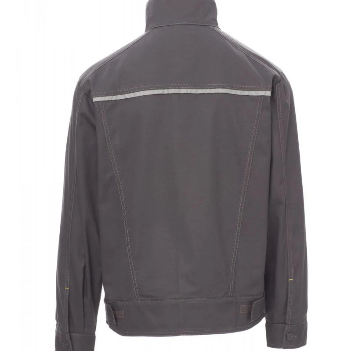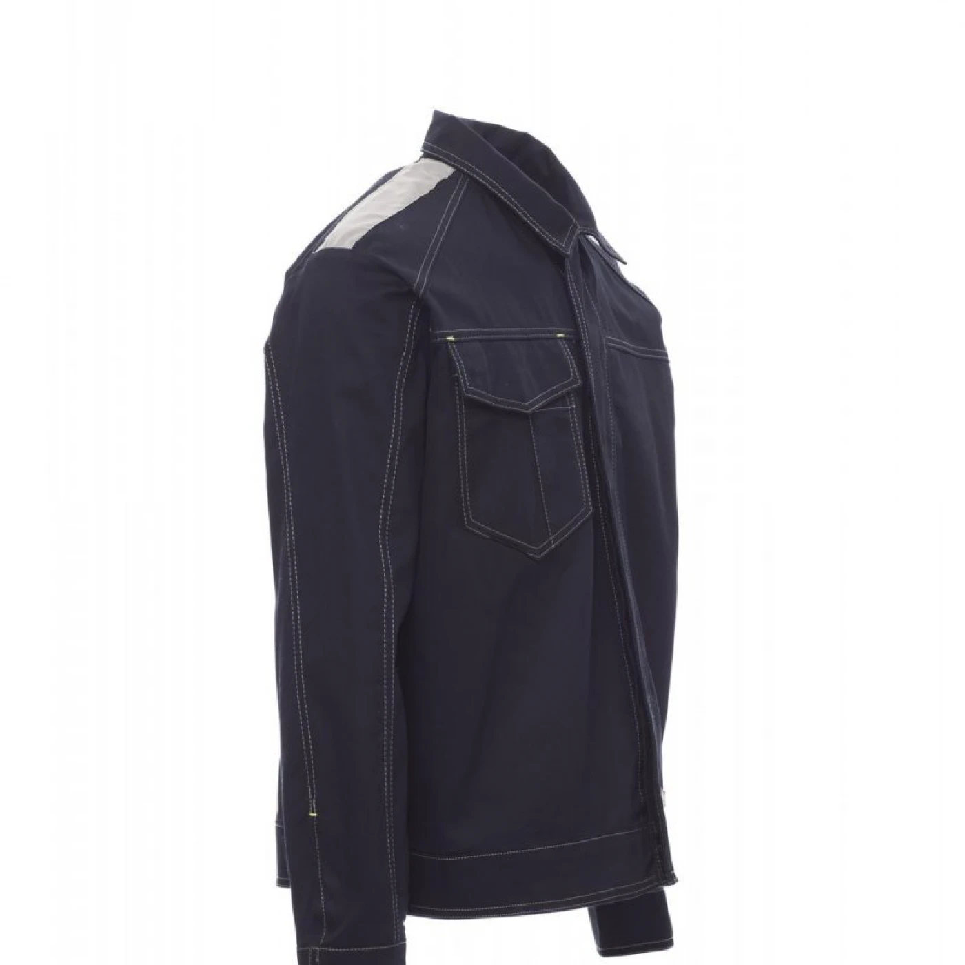 Jachetă de lucru nevatuita pentru iarna cu cusaturi duble contrastante si talie reglabilă, confecționată din bumbac 100% și accesorizată cu benzi reflectorizante pe umeri si spate. Buzunarul de la piept se închide cu velcro si este acoperit cu clapeta, suport pentru ecuson si pentru stilou. Închiderea frontală se face cu nasturi din plastic acoperiti cu fenta, manșeta inchisa nasturi si talie ajustabila cu velcro. Se utlizeaza in medii cum ar fi: construcții, industrie ușoară, logistică, manipularea depozitelor, ateliere de reparații auto, întreținere, montaj, agricultură, grădină, hobby, etc.