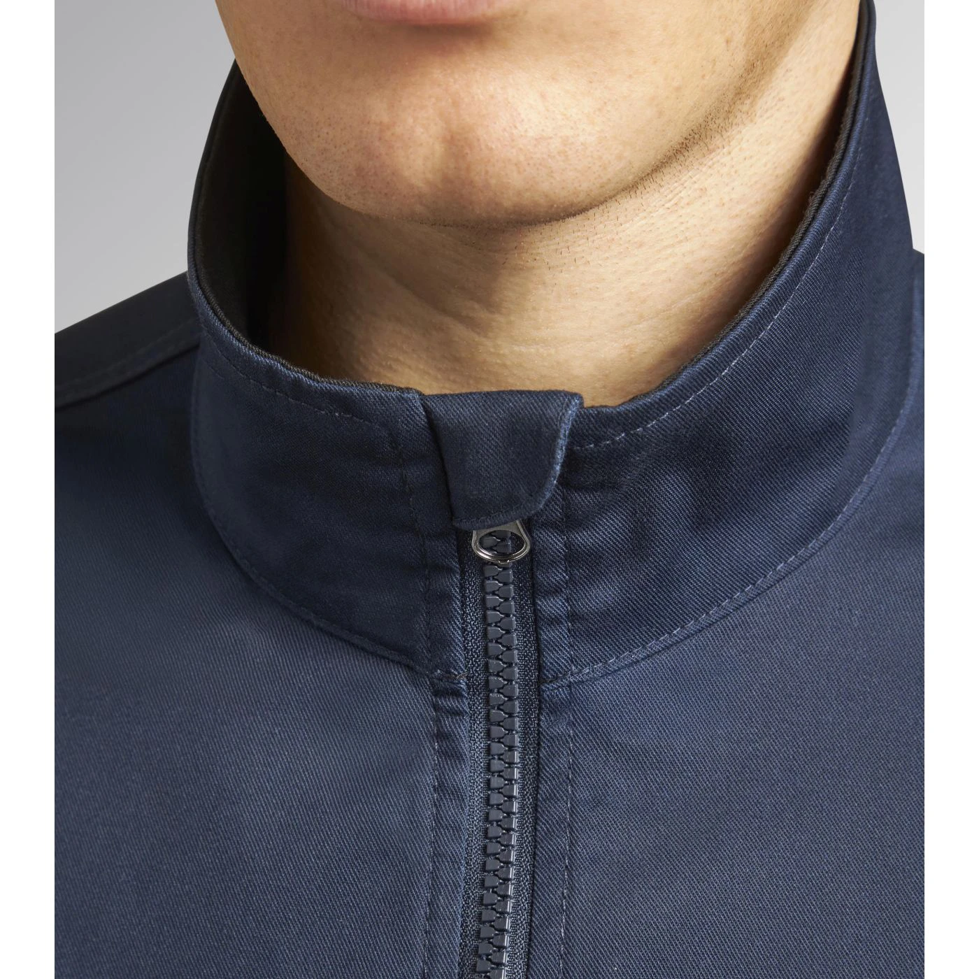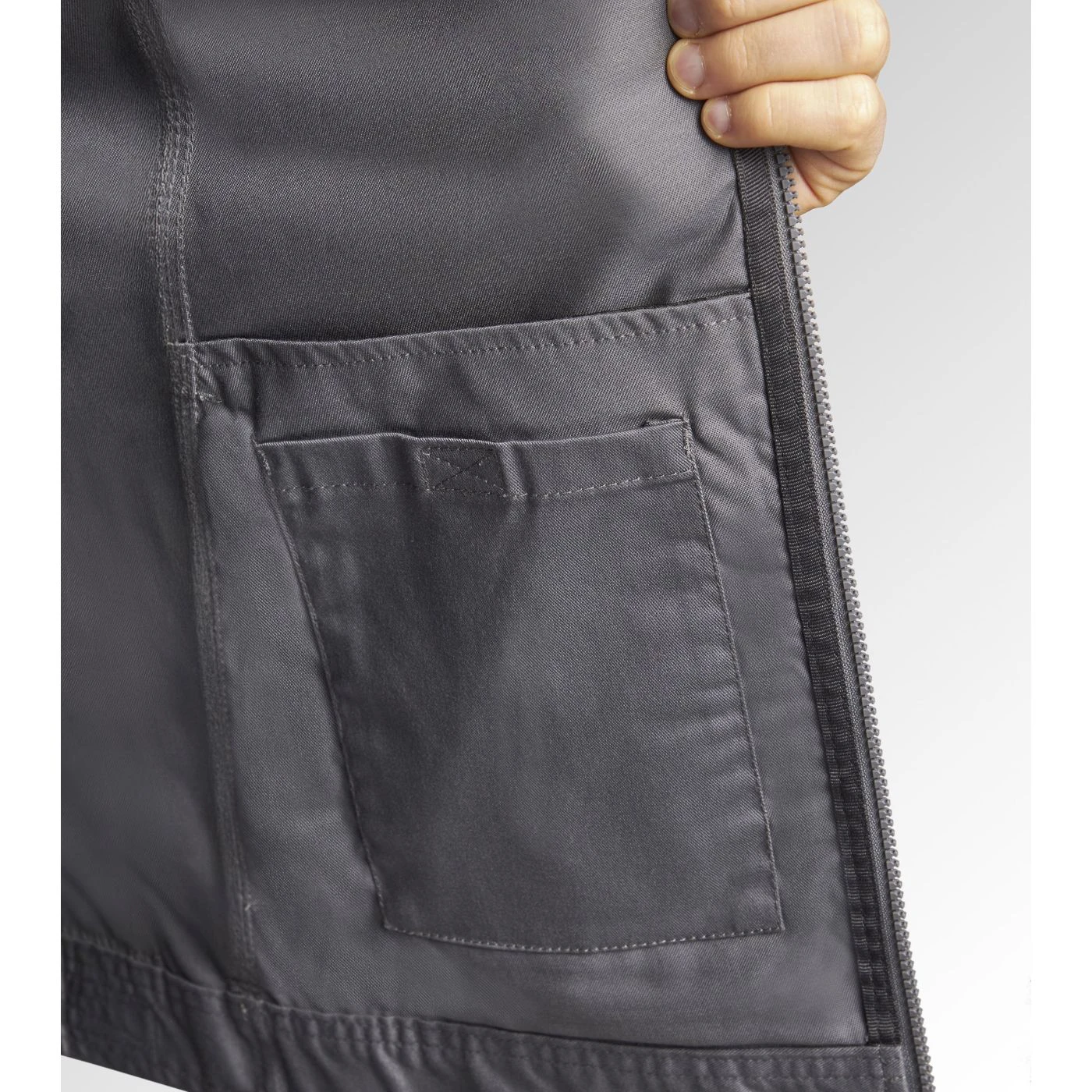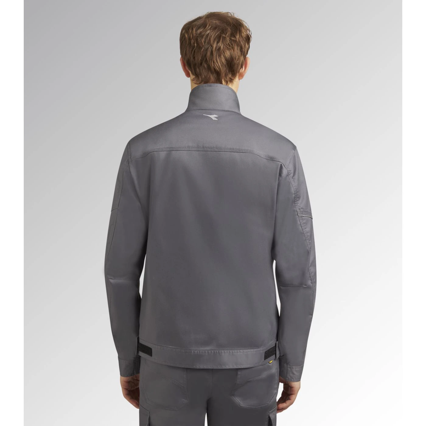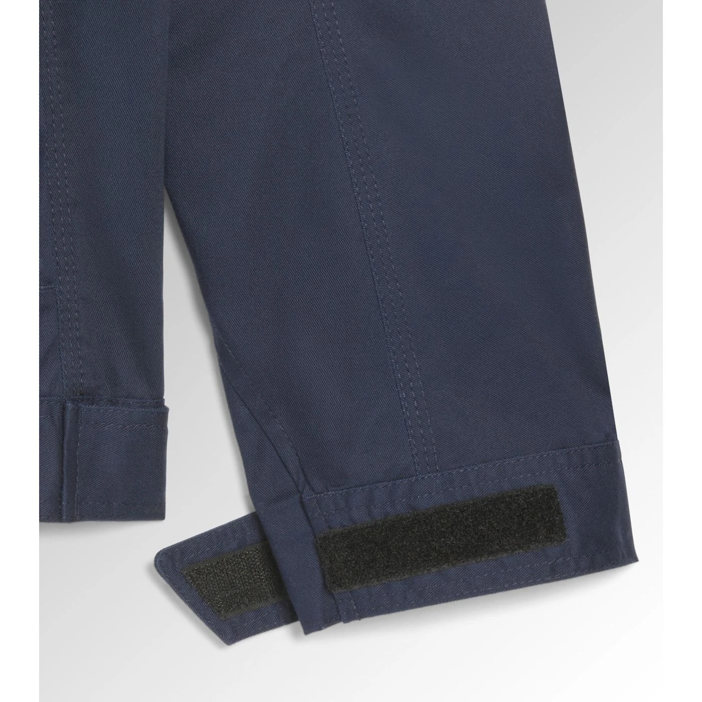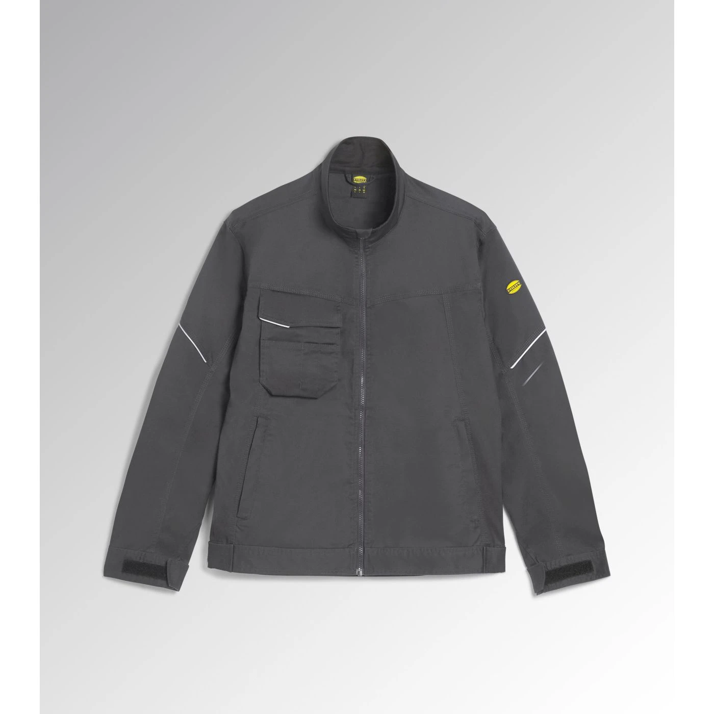 Multi-pocket stretch poly-cotton jacket, stand-up collar with full zip and chin guard, multifunctional breast pocket with badge holder on the left side, right side free for customisation. Zipped side pockets. Adjustable Velcro hem. Ergonomic sleeves with adjustable cuffs, darts and reflective details. Triple seams.