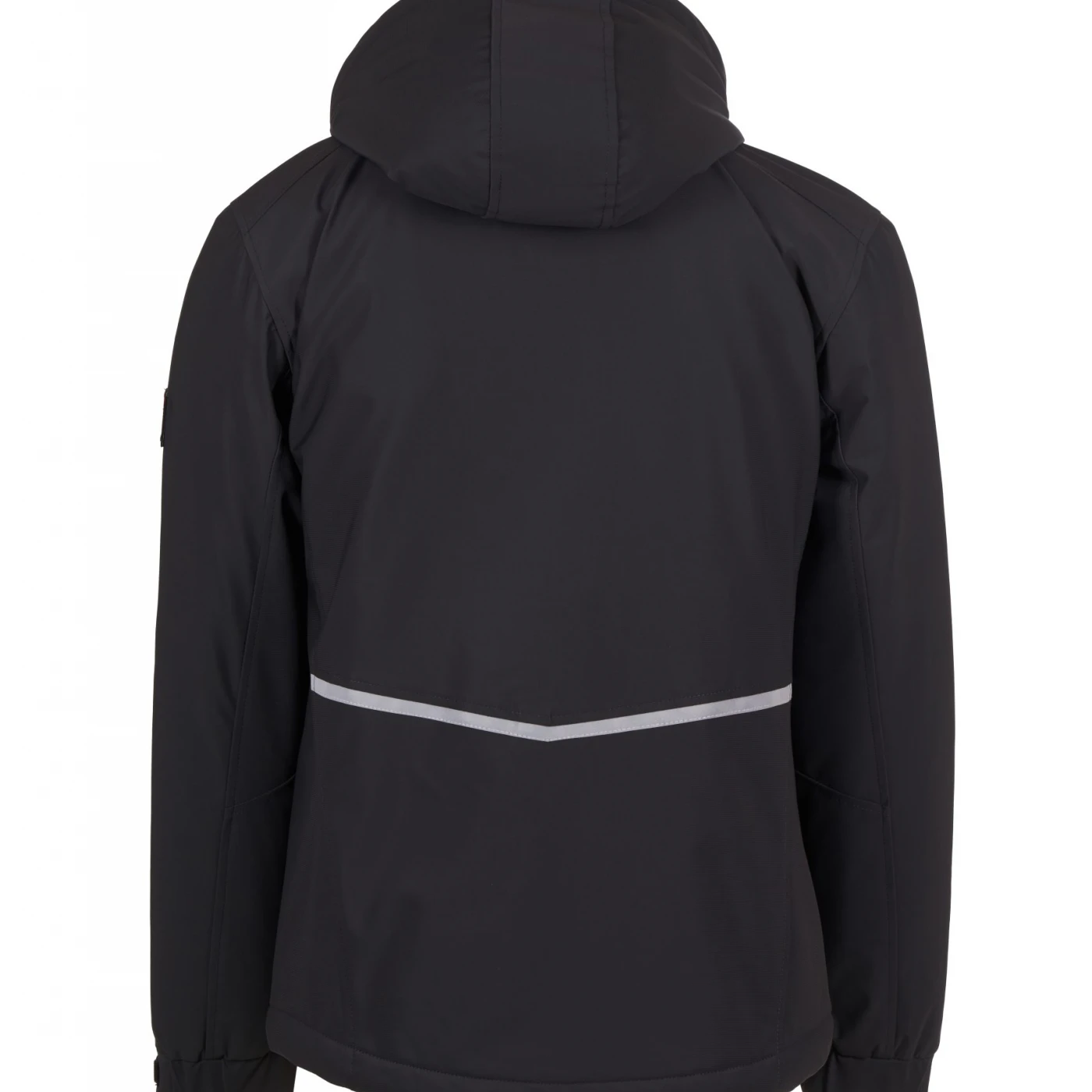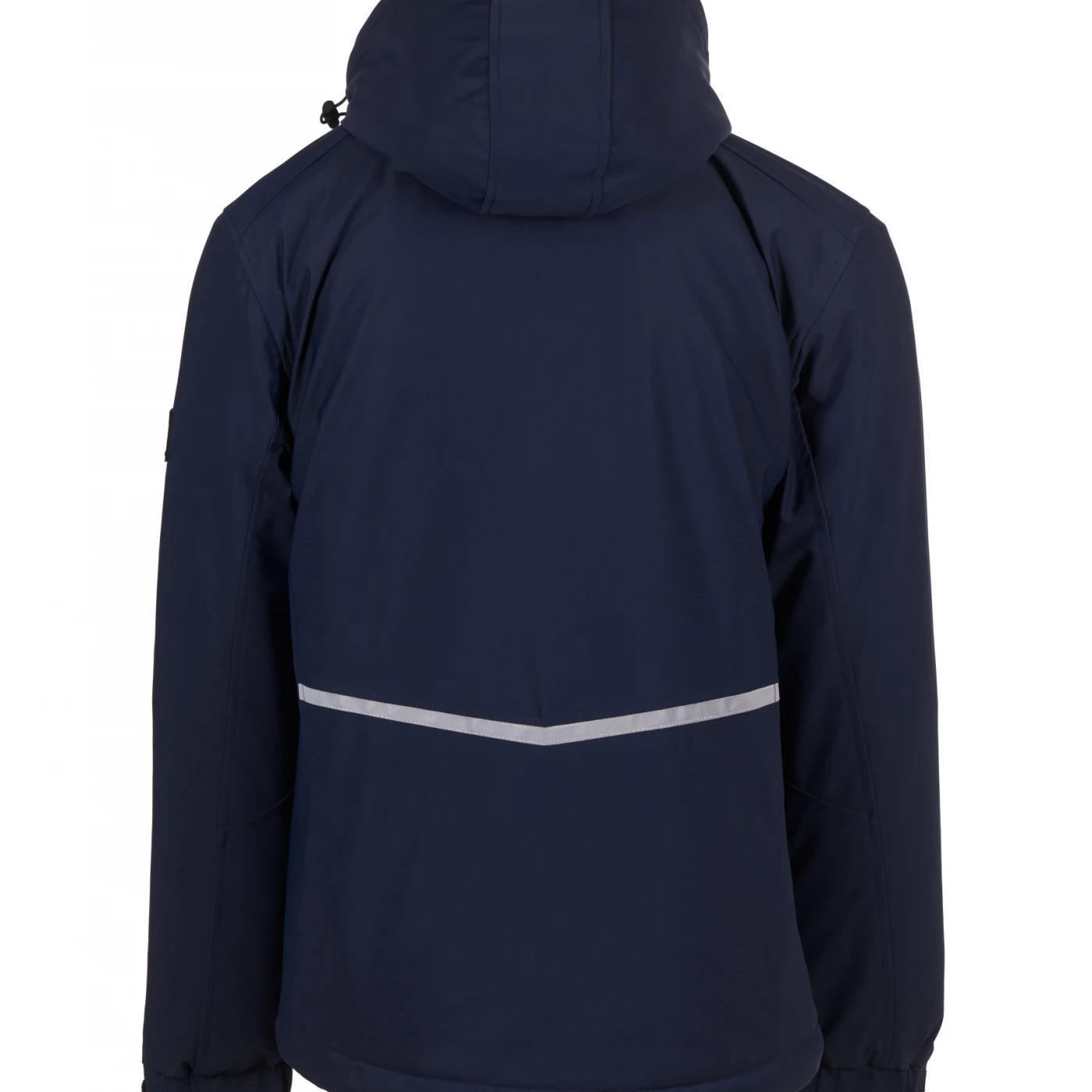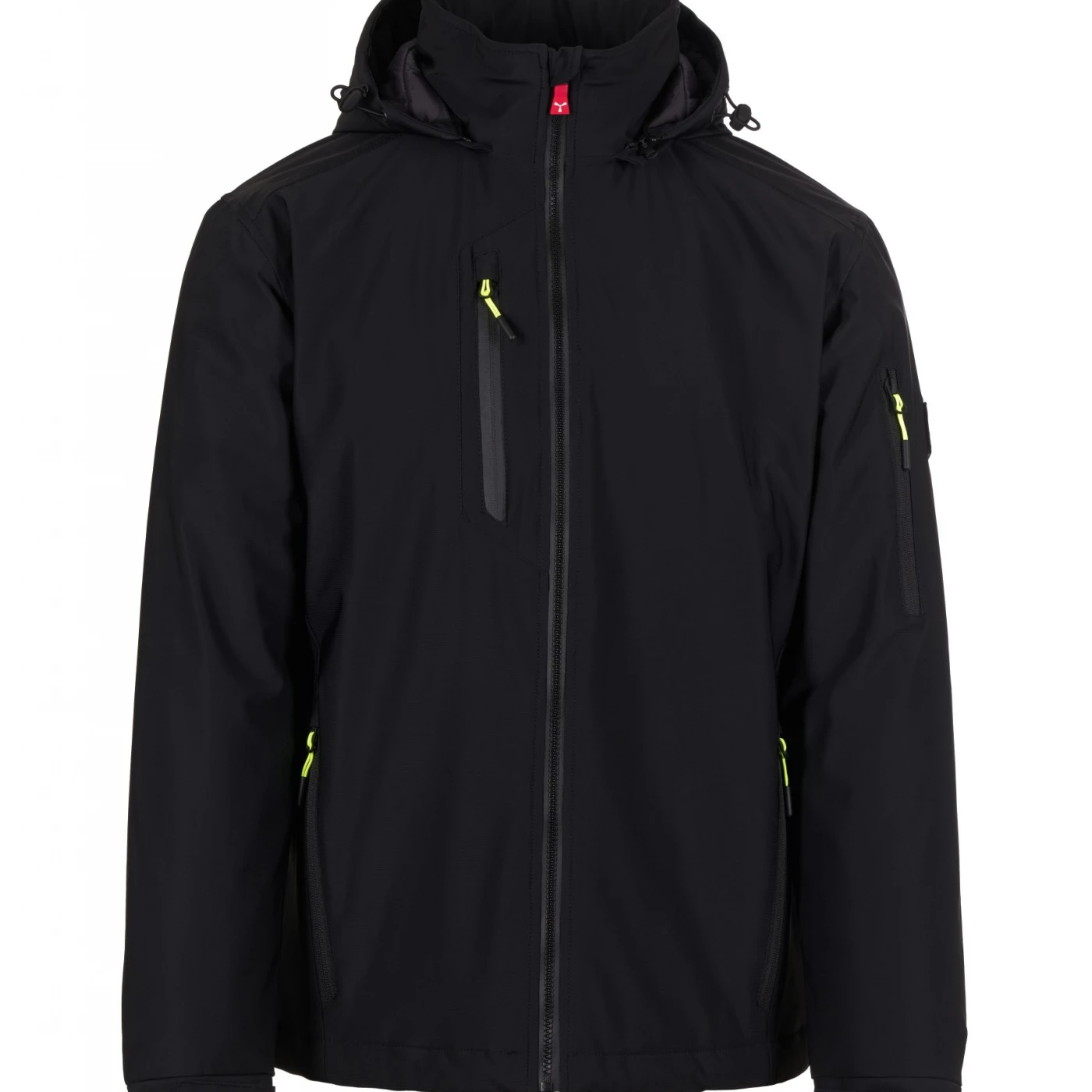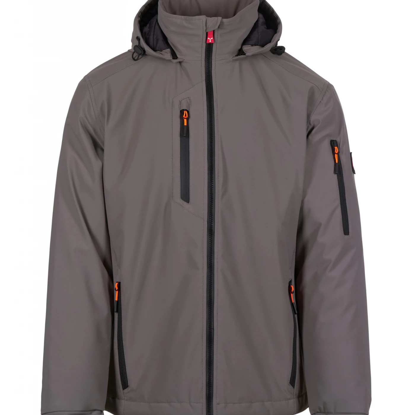 Soft-shell impermeabil pentru bărbați, cu căptușeală lejeră și închidere cu fermoar SBS dotat cu cursor metalic „semi-auto lock” și dispozitiv de tragere personalizat. Glugă detașabilă cu șnur reglabil. Elemente reflectorizante aplicate pe spate, la nivelul taliei și pe glugă. Manșete elastice, ajustabile cu închidere tip scai. Două buzunare laterale cu fermoar, un buzunar la piept și unul pe brațul stâng, ambele cu fermoar, acesta din urmă având suport integrat pentru pix. Prezintă detalii fluorescente și un buzunar interior cu închidere tip scai. Partea inferioară este reglabilă cu opritor personalizat. \n \n