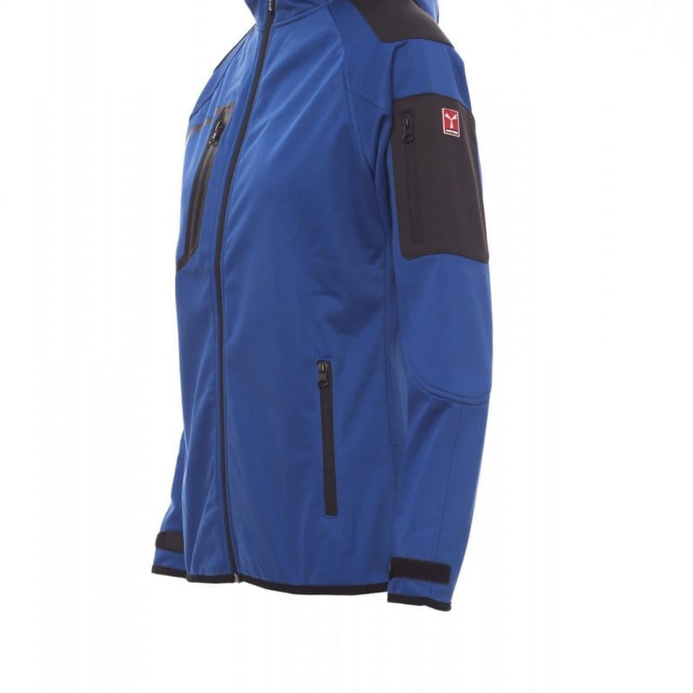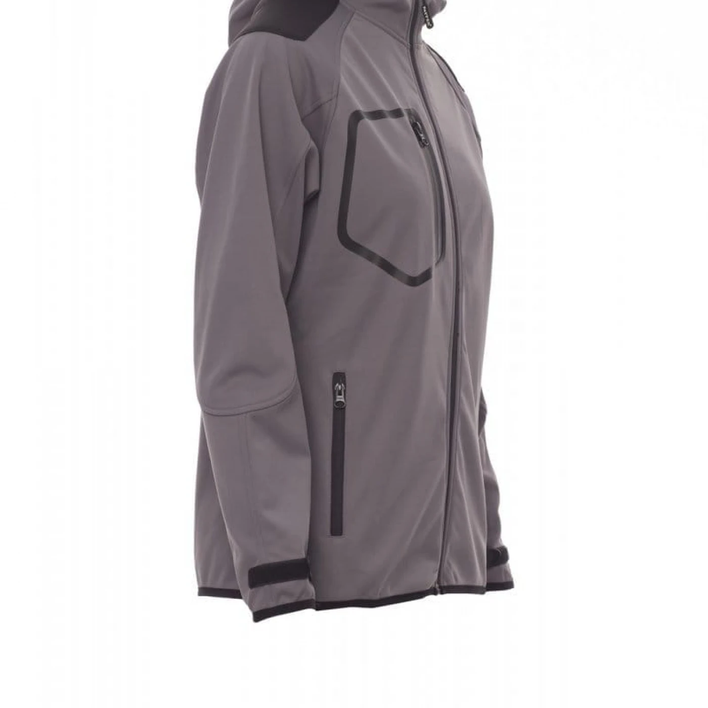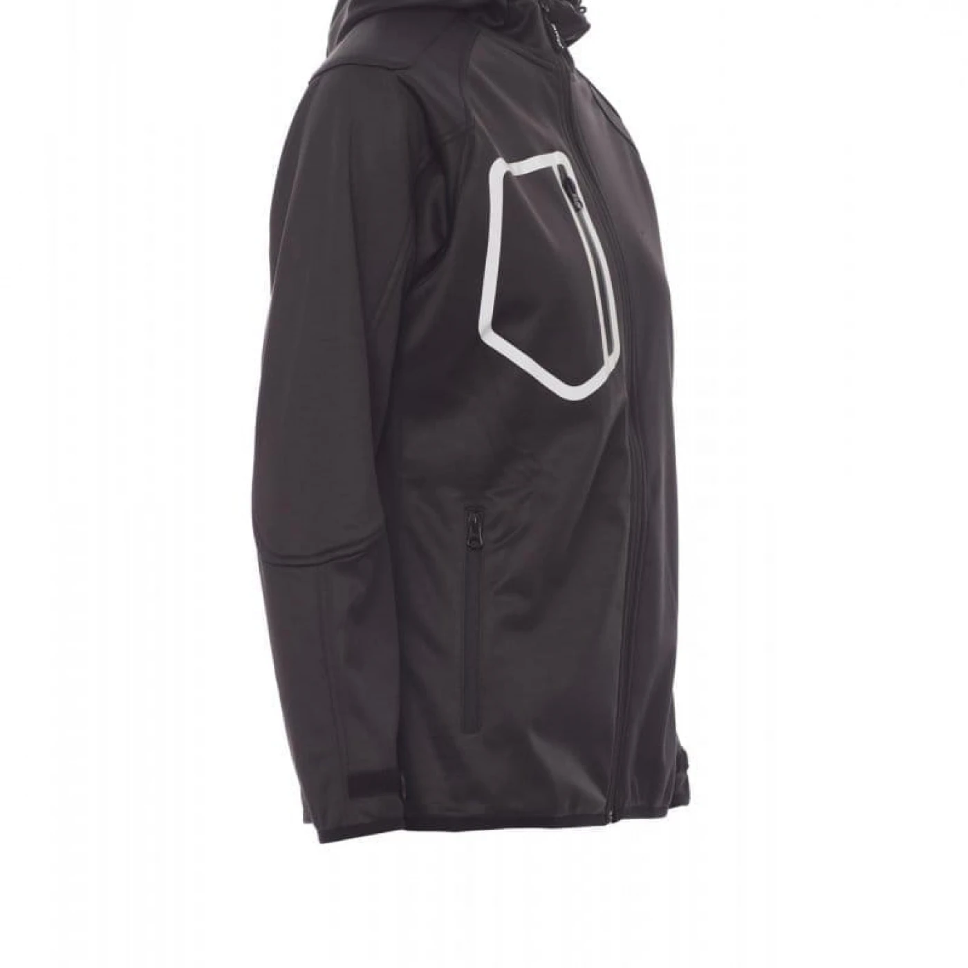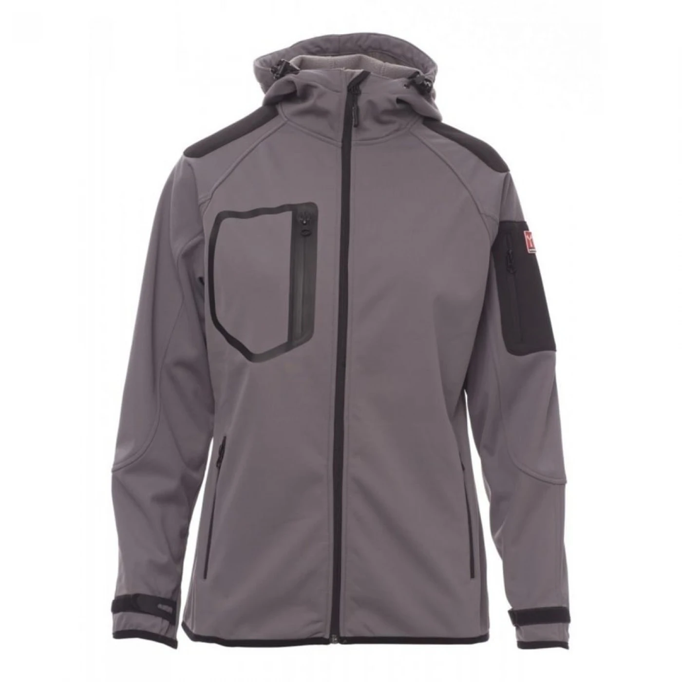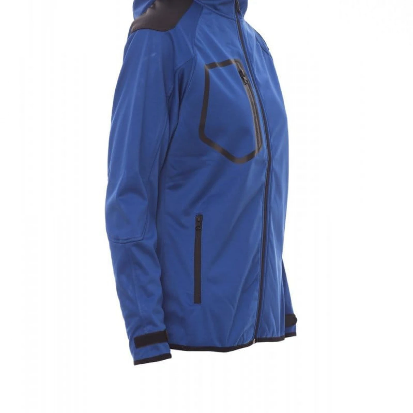 Jacheta dama softshell confortabila si respirabila care asigura o protectie sporita impotriva vantului (windproof) si impotriva apei (waterproof - WP 8000 mm H₂O, WVT 5000 g/m² 24h). Gluga are cusaturi duble si reglabila cu snur. Mansetele sunt reglabile cu velcro. Jacheta este echipata cu doua buzunare frontale, un buzunar la piept si unul pe maneca stanga, toate inchise cu fermoar. Culori contrastante pe umeri, maneci si mansete.
