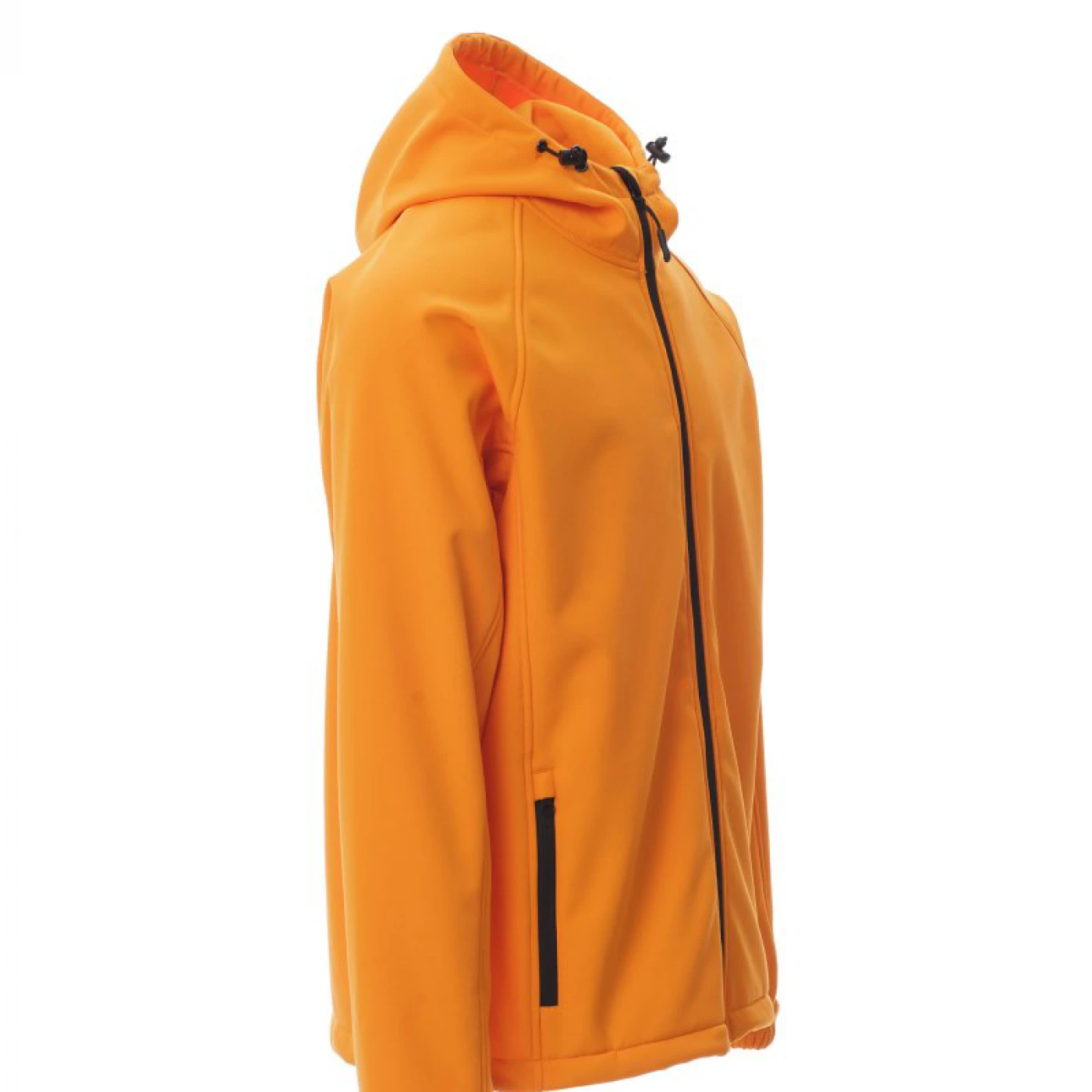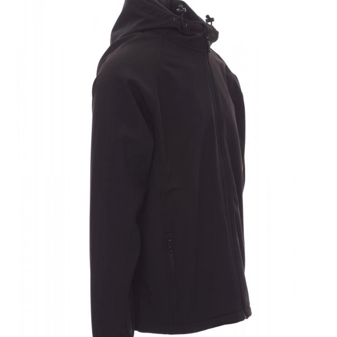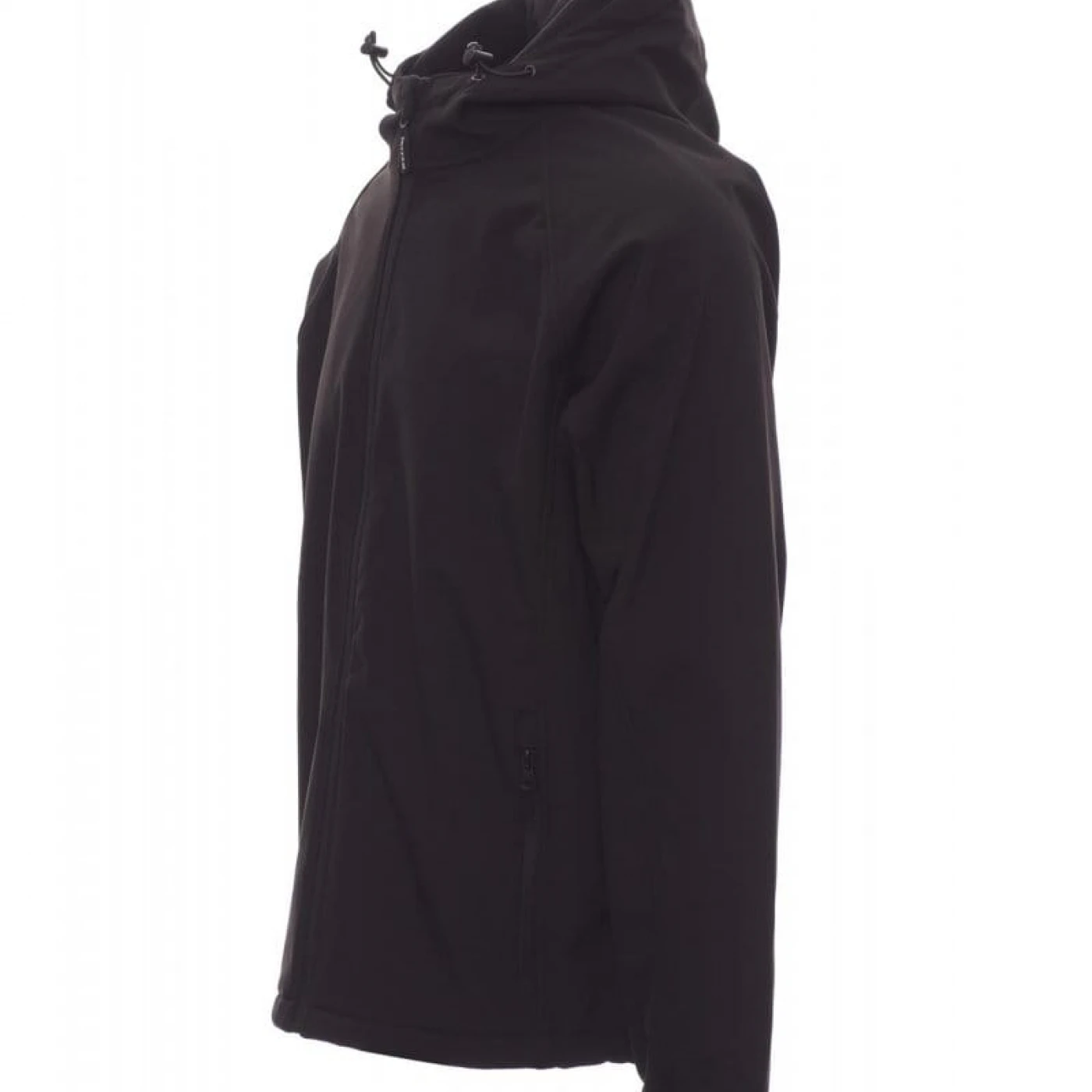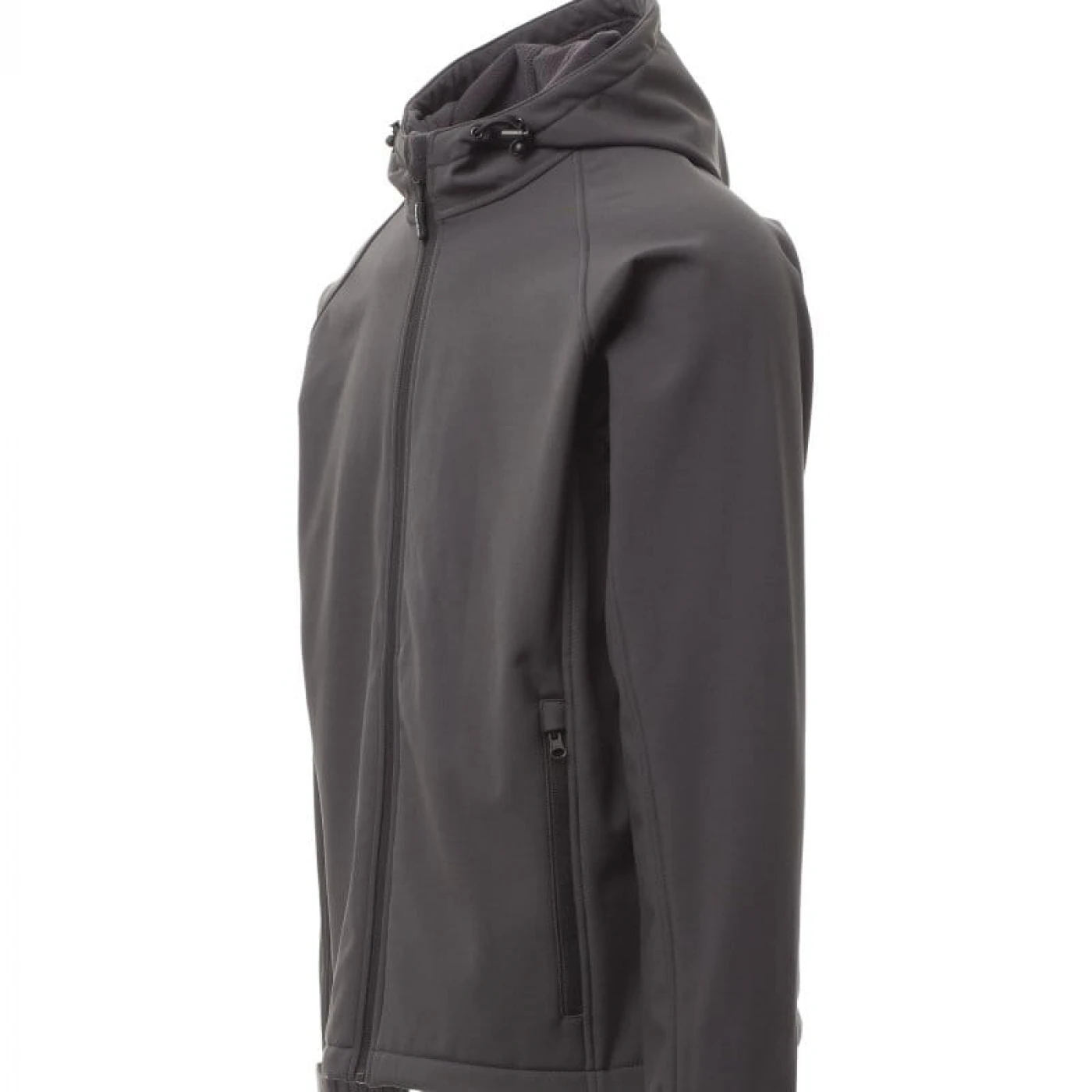 Jacheta softshell pentru barbati, cu gluga nedetasabila si care asigura o protectie sporita impotriva vantului (windproof) si impotriva apei (waterproof - WP 8000 mm H₂O, WVT 5000 g/m² 24h). Inchiderea frontala se face cu fermoar lung cu sistem de semiblocare. Are o croiala confortabila si este echipata cu doua buzunare mari in partea din fata, mansete elastice inchise cu velcro si snur in talie. \n