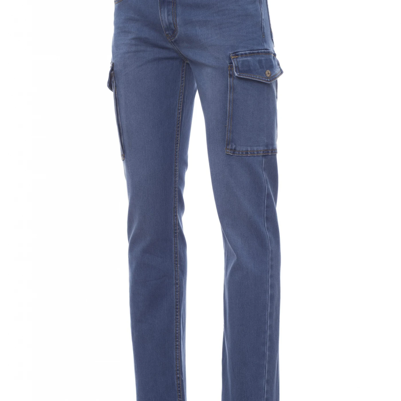 Blugi pentru bărbați, potriviți pentru toate anotimpurile, prevăzuți cu cinci buzunare clasice și două buzunare laterale încăpătoare cu clapetă și sistem LOCK SYSTEM. Închidere frontală cu fermoar metalic și nasture. Tratament stone wash, cu aspect uzat și decolorat. Cusături contrastante de rezistență duble pe interiorul piciorului, croială dreaptă. Capse și inserții din piele veritabilă. \n \n