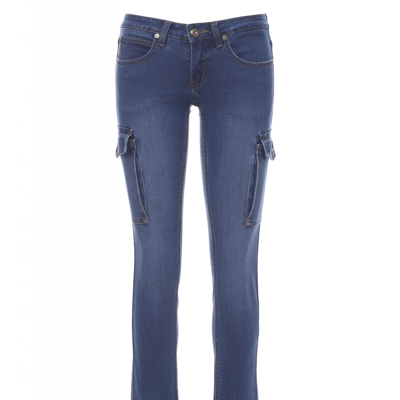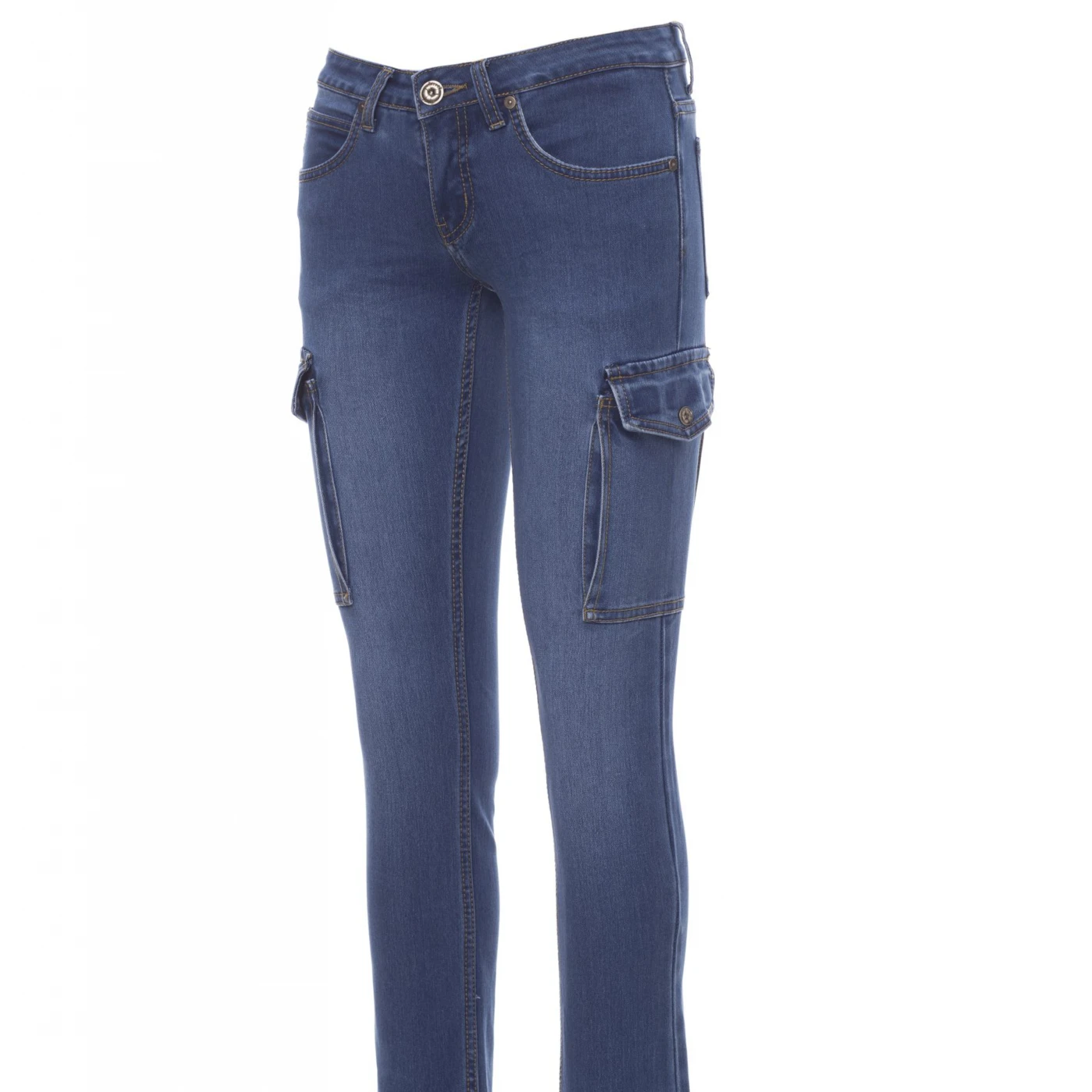 Blugi pentru femei, potriviți pentru toate anotimpurile, prevăzuți cu cinci buzunare clasice și două buzunare laterale încăpătoare cu clapetă și sistem LOCK SYSTEM. Închidere frontală cu fermoar metalic și nasture. Tratament stone wash, cu aspect uzat și decolorat. Cusături contrastante de rezistență duble pe interiorul piciorului, croială dreaptă. Capse și inserții din piele veritabilă. \n \n