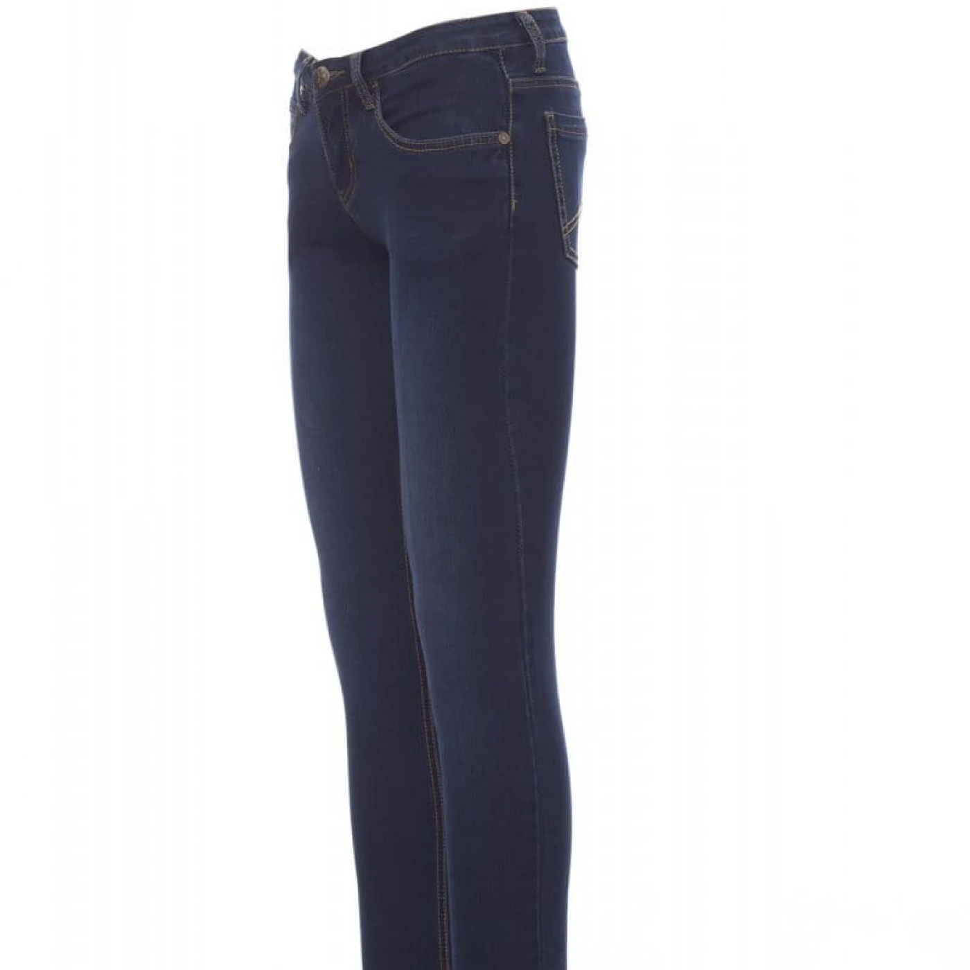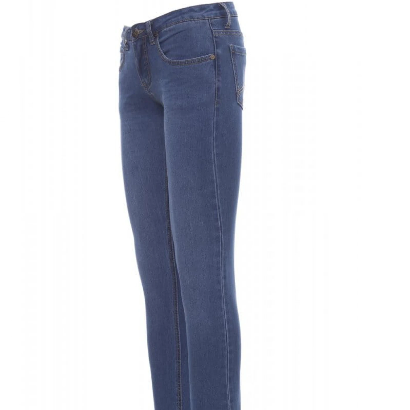 Pantaloni talie pentru femei din denim stretch cu o croiala clasica si culori cu efect uzat de tip "stone wash". Inchidere in fata cu fermoar metalic si nasture, prevazuti cu gaici de prindere a curelei in talie. Au cusaturi duble rezistente pe interiorul piciorului si sunt echipati cu cate doua buzunare clasice frontale si in partea din spate.