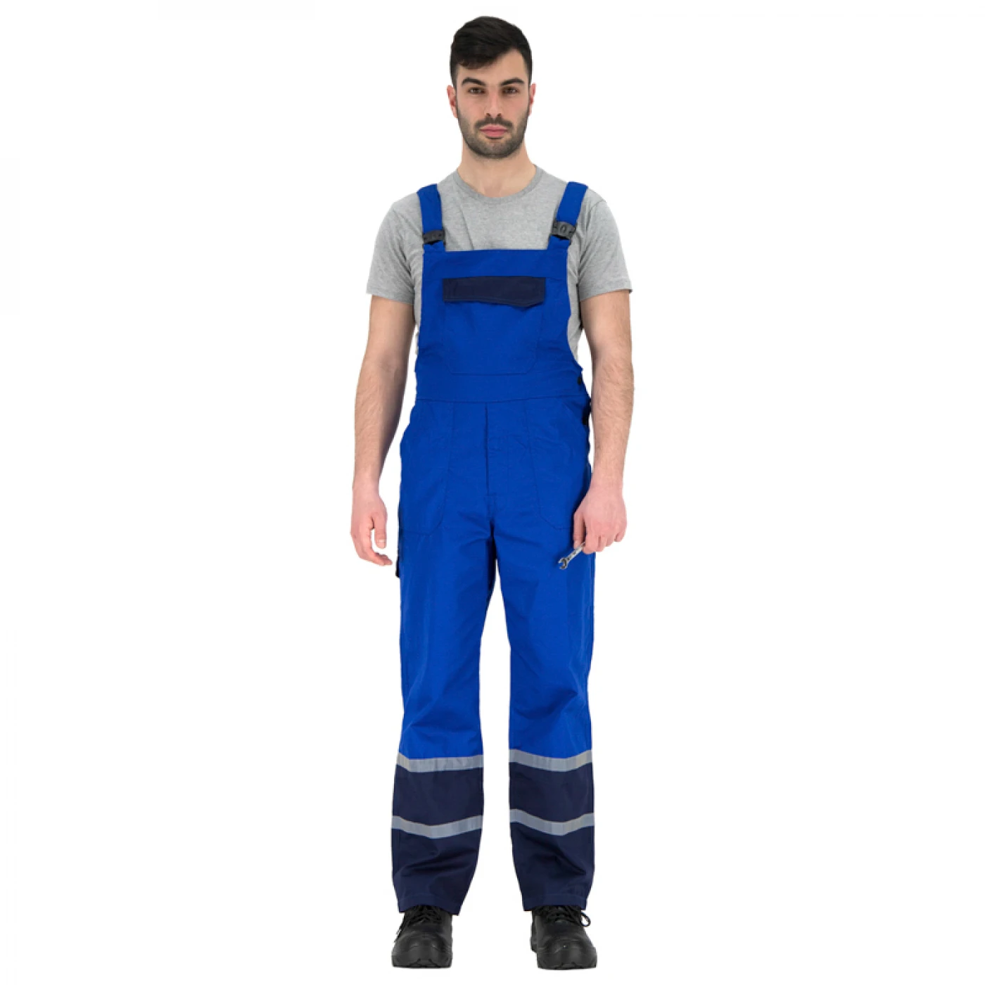 Salopetă CHAR cu betelie și bretele elastice, dotată cu multiple buzunare și benzi reflectorizante. Prevăzută cu betelie și bretele elastice pentru mobilitate optimă. Dispune de buzunar cu clapetă pe pieptar, buzunare cu clapetă pe partea dorsală și pe piciorul drept, precum și un buzunar pentru unelte pe partea laterală stângă. Două benzi reflectorizante de 2,5 cm sunt aplicate sub zona genunchilor pentru vizibilitate crescută. \n