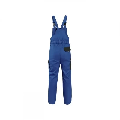 Pantaloni cu pieptar, cu buzunar pe pieptar cu fermoar, talie cu bandă elastică în partea din spate, buzunare frontale, buzunar lateral pentru ruletă/scule, buzunar lateral pentru telefon mobil/portofel, genunchi dubli, buzunar la spate cu clapetă, bretele elastice în partea din spate, accesorii reflectorizante.