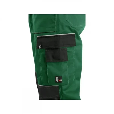 Pantaloni cu pieptar pentru bărbați, cu buzunare pe pieptar, talie cu bride pentru curea și bandă elastică în partea din spate, buzunare frontale cu bucle pentru scule, buzunare multifuncționale pe ambele părți, genunchi întăriți cu poliester 600D și deschidere pentru genunchiere, două buzunare la spate, unul cu închidere velcro, bretele elastice în partea din spate, accesorii reflectorizante.