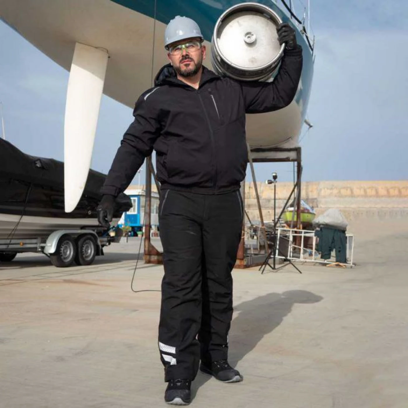 Salopetă de lucru matlasată, din material Softshell - rezistent la vânt și apă.