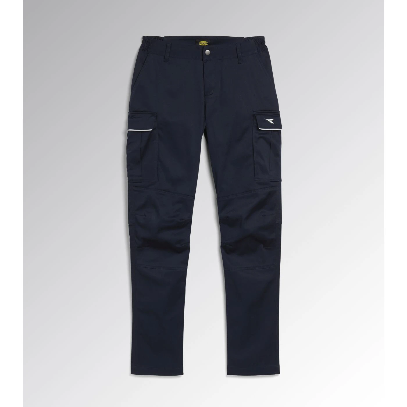 Women’s slim-fit cargo work trousers. Two side pockets, a hip pocket, reflective details, a stretch waistband and triple-stitched seams. Contoured waistband that is higher on the back, designed to mould perfectly to the anatomy of the female body. Darted knees for a more ergonomic fit.